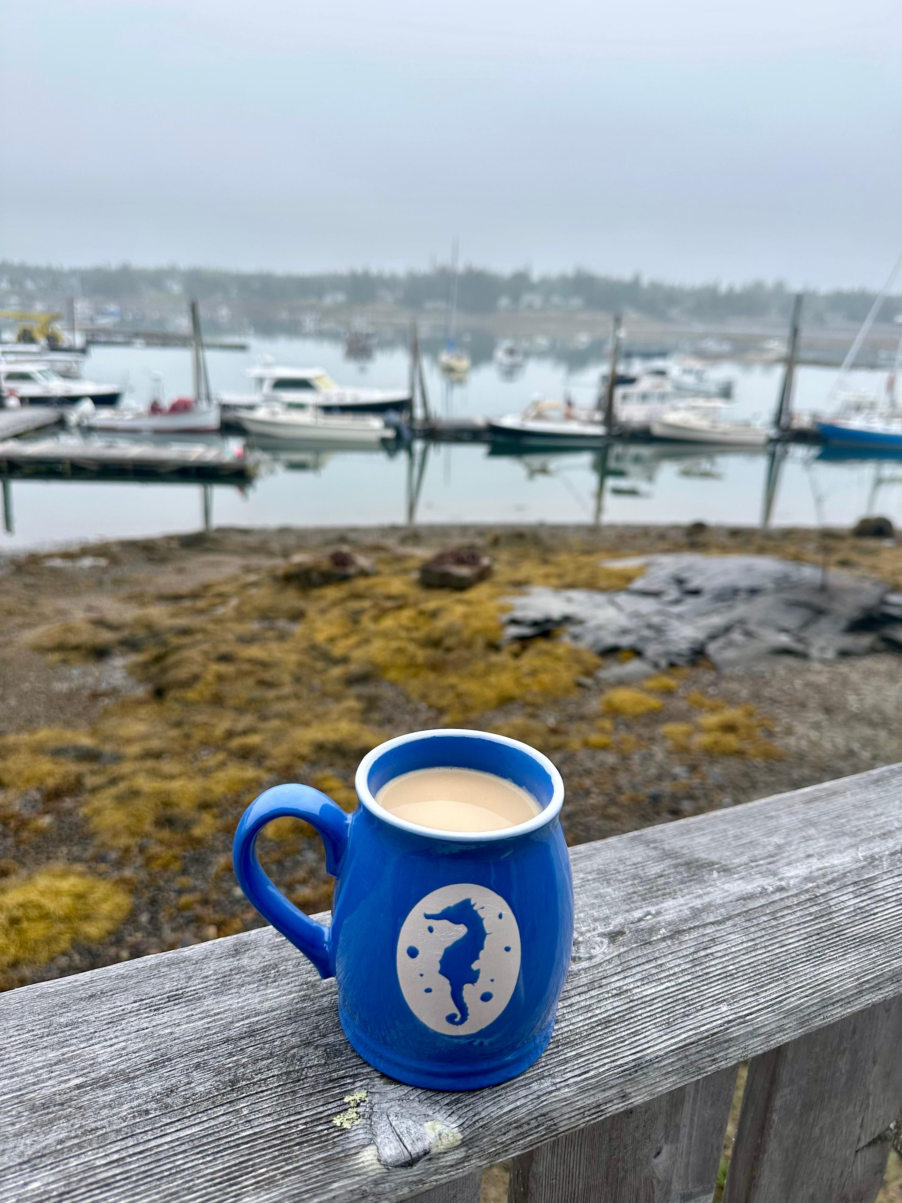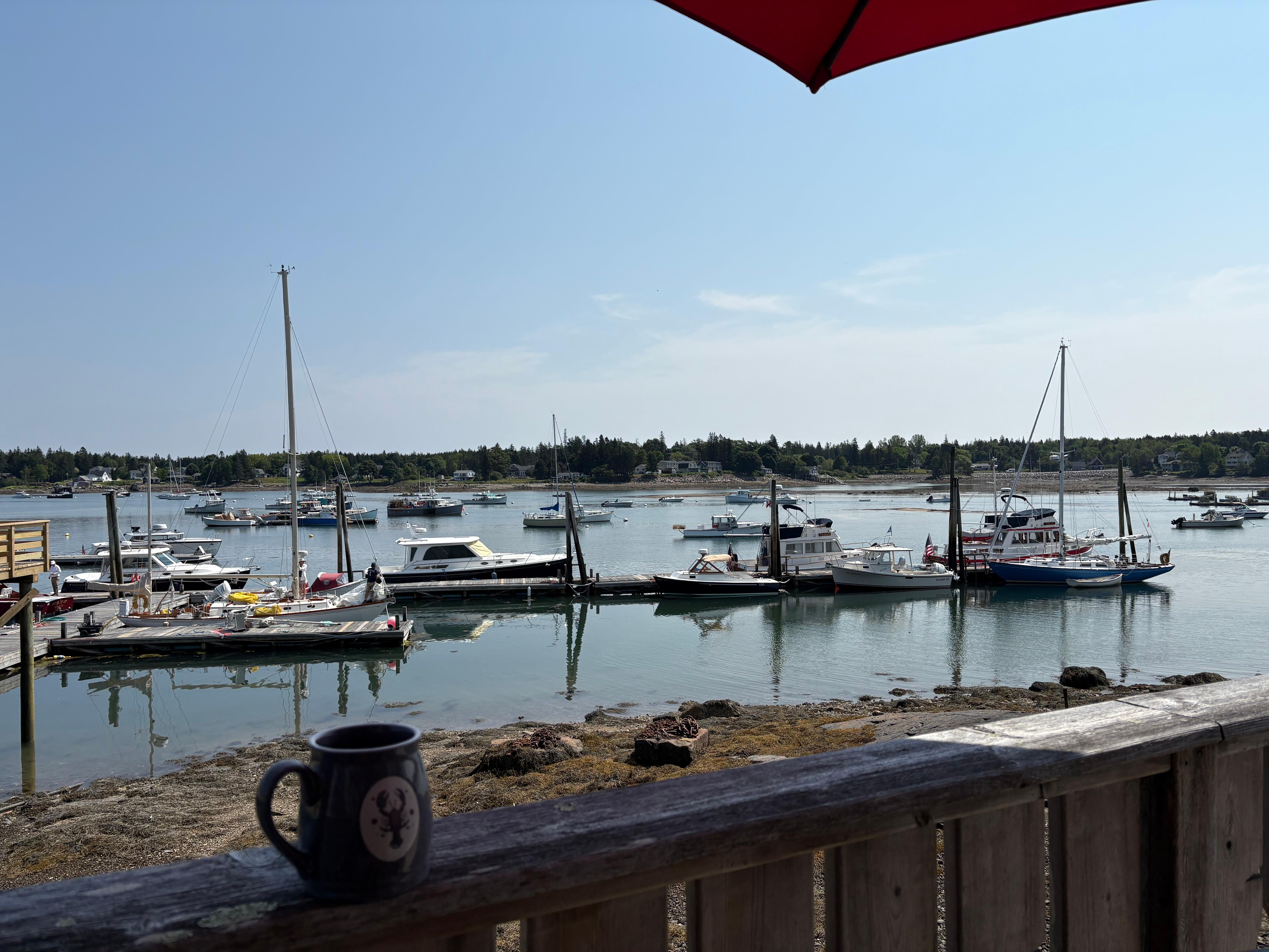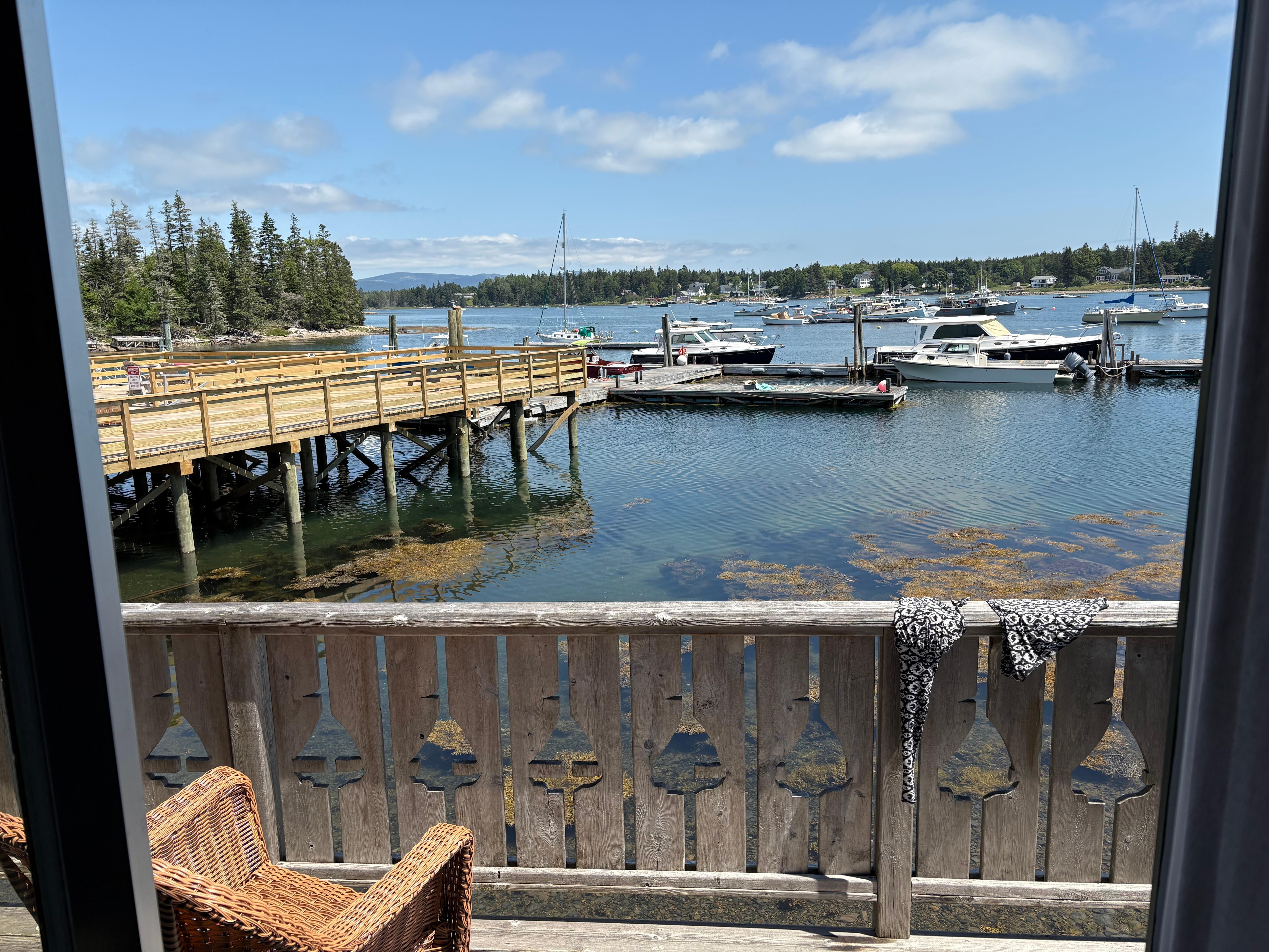 Sip your coffee before your hiking, kayaking and/or sightseeing adventures as boats, both working lobster and pleasure craft, crisscross the harbor below.