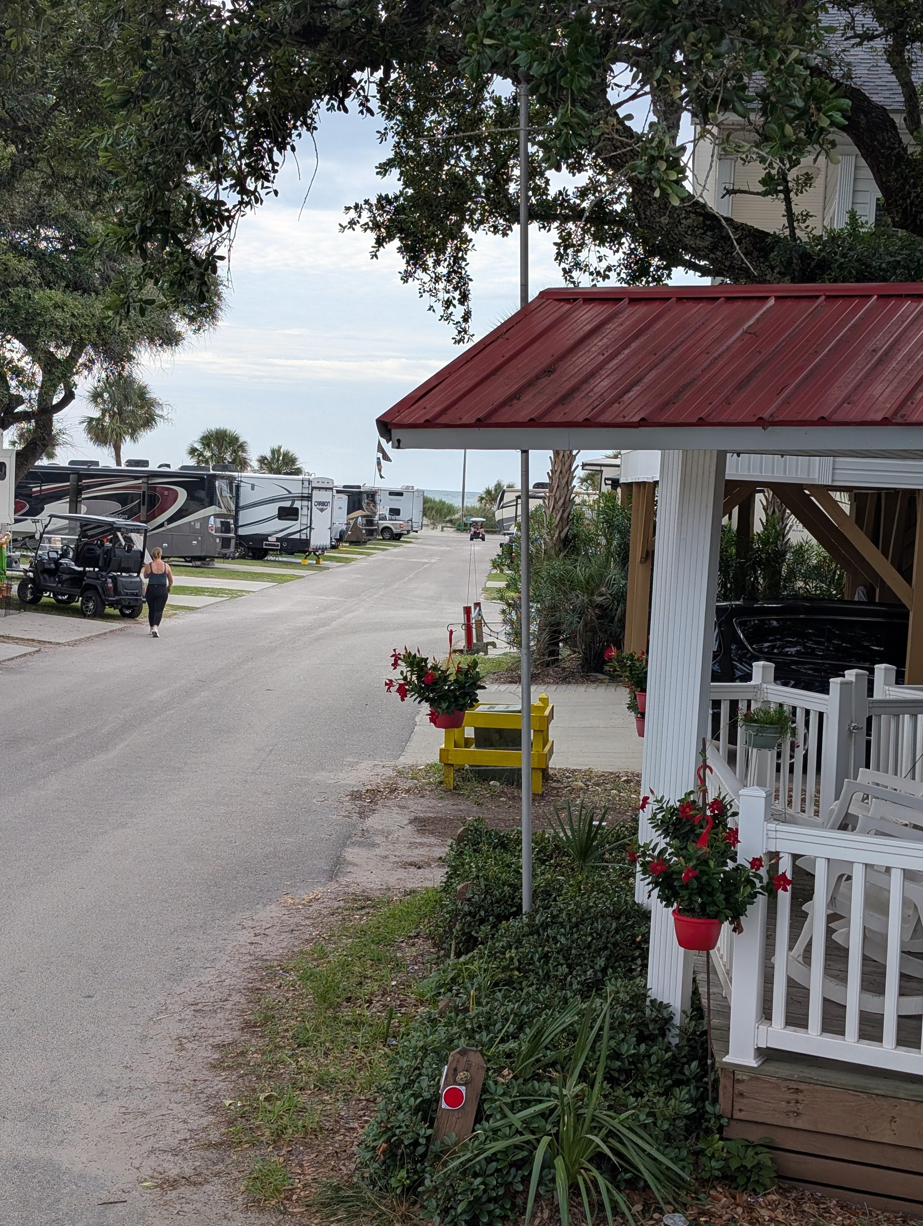The location inside Ocean Lakes was phenomenal!! Close to EVERYTHING! House is just precious. A/C worked really well which is a huge plus for us hot natured folks. The deck is the perfect size to sit on at night and watch all the golf carts go by and then also refreshing in the morning with a great cup of coffee. We’ve never been to Ocean Lakes and now it is a MUST for us to try and visit every chance we get. We’ll definitely book Salty Dogz Chateau again and again.