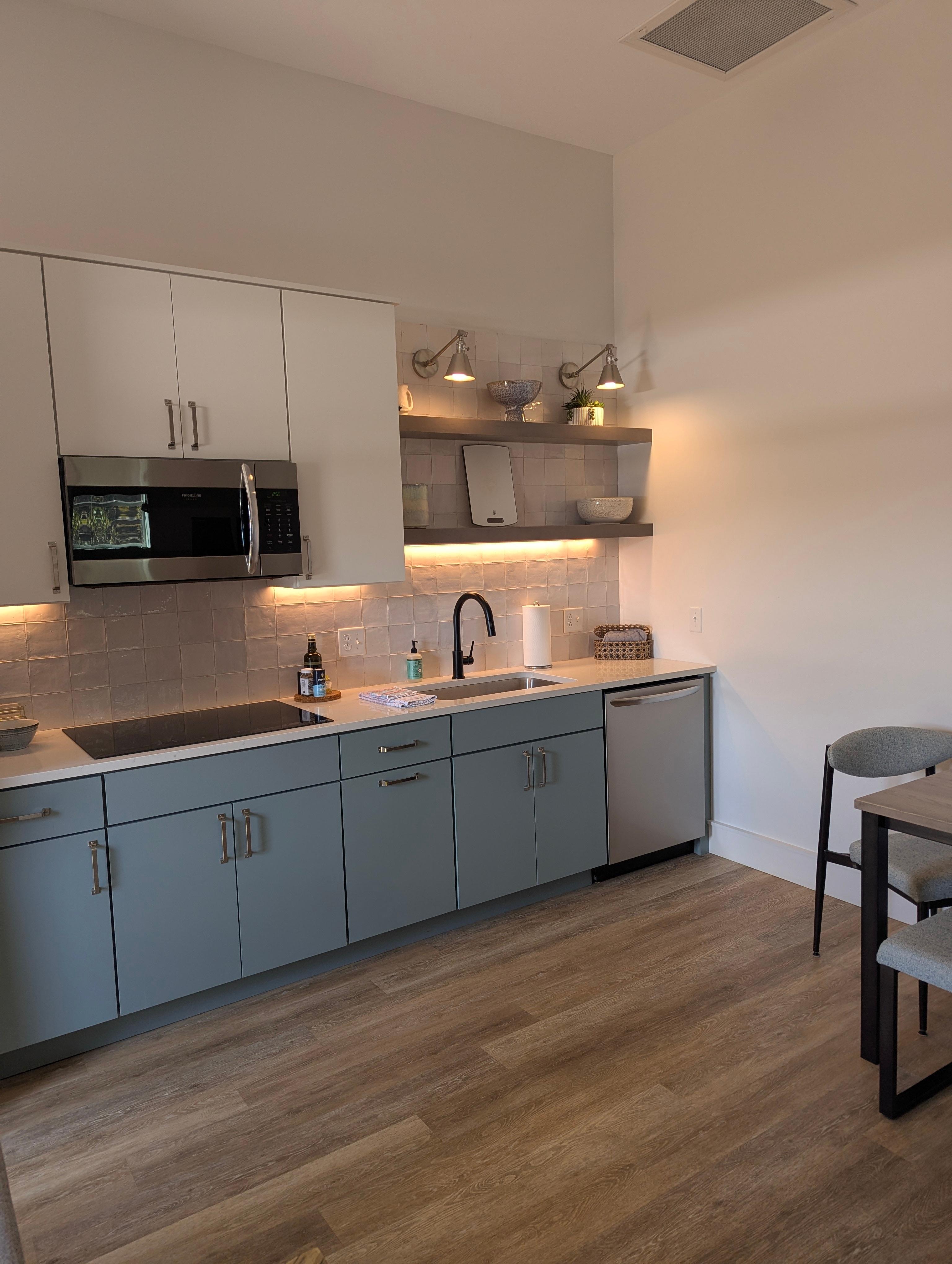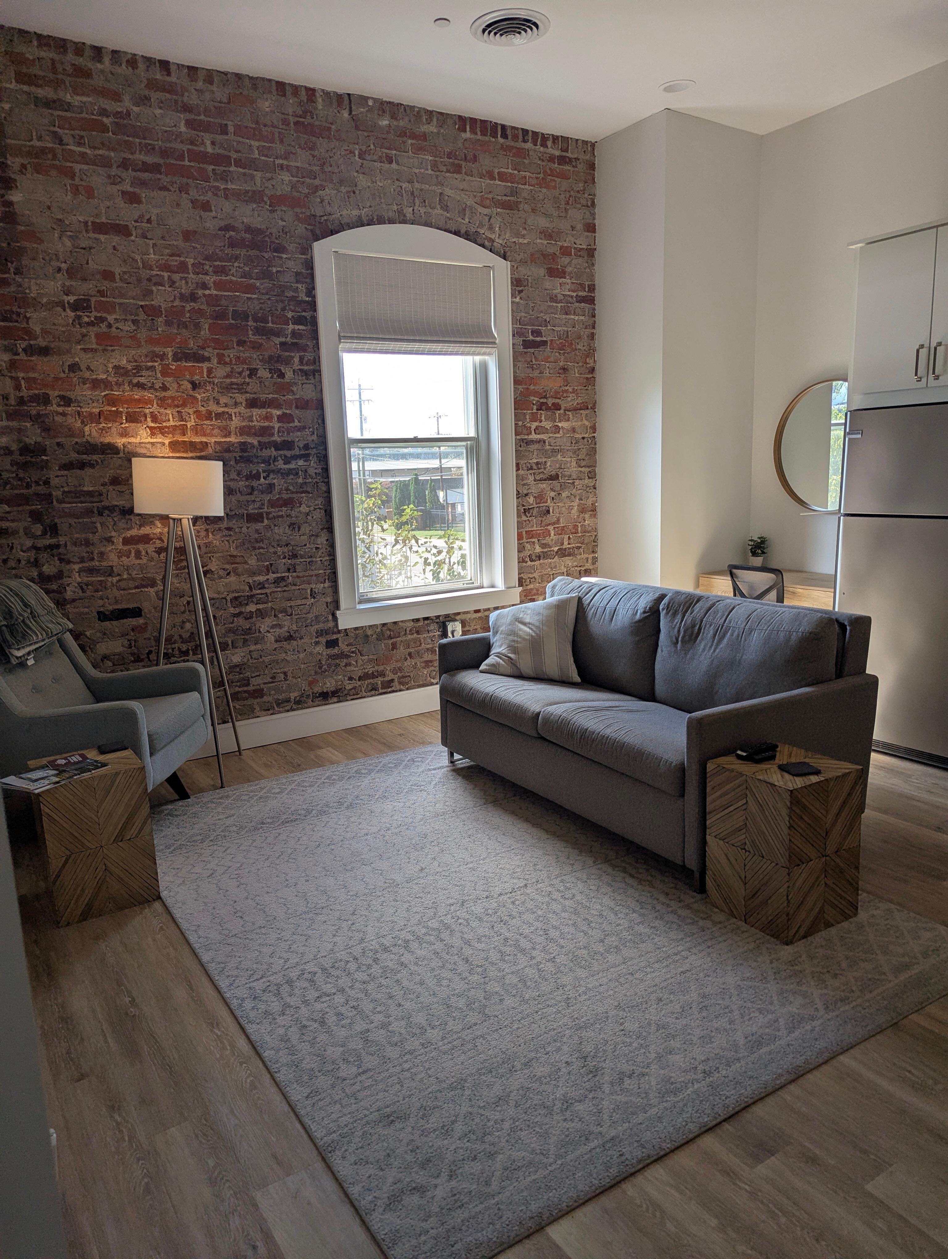 The Barber Street Flats are in a newly-restored 1910 building - everything about the property is new and modern. There is private parking behind the building and also two EV chargers for guests to use.