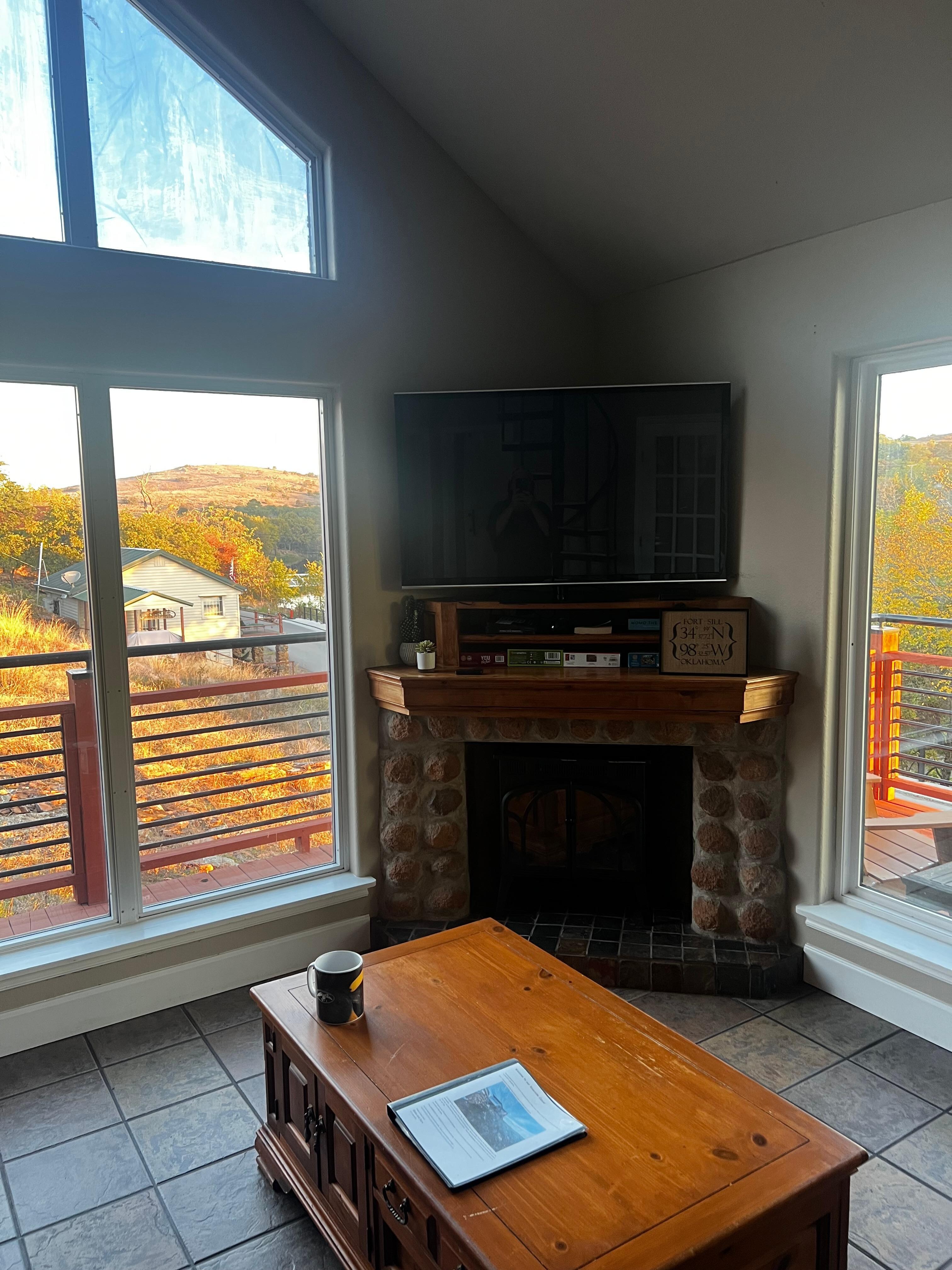 Overlooking Medicine Creek with stunning views of Mount Scott and Bath Lake, this stylish Medicine Park vacation rental sleeps 15. Includes a hot tub, 5 bedrooms (apt suite, 2 1st floor bedrooms, 1 loft bedroom w/door and an open loft bedroom over living area, 3 full baths, gourmet kitchen, and new appliances. Walk to Cobblestone Row. Pet friendly with fee. Perfect for families, couples, or group getaways. Price is determined by the number of guests, pet fee, and time of year.
