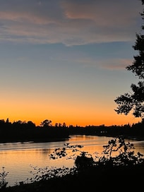The awe-inspiring river views are complemented by a thoughtfully designed interior. The main level beckons with a cozy living room featuring a plush sofa and a smart TV, a fully stocked kitchen with delightful coffee and snacks, and a spacious office nook overlooking the tranquil waters. Ascend to the loft sleeping area, where a sumptuous queen bed awaits, flanked by two nightstands with convenient outlets for all your electronic needs.