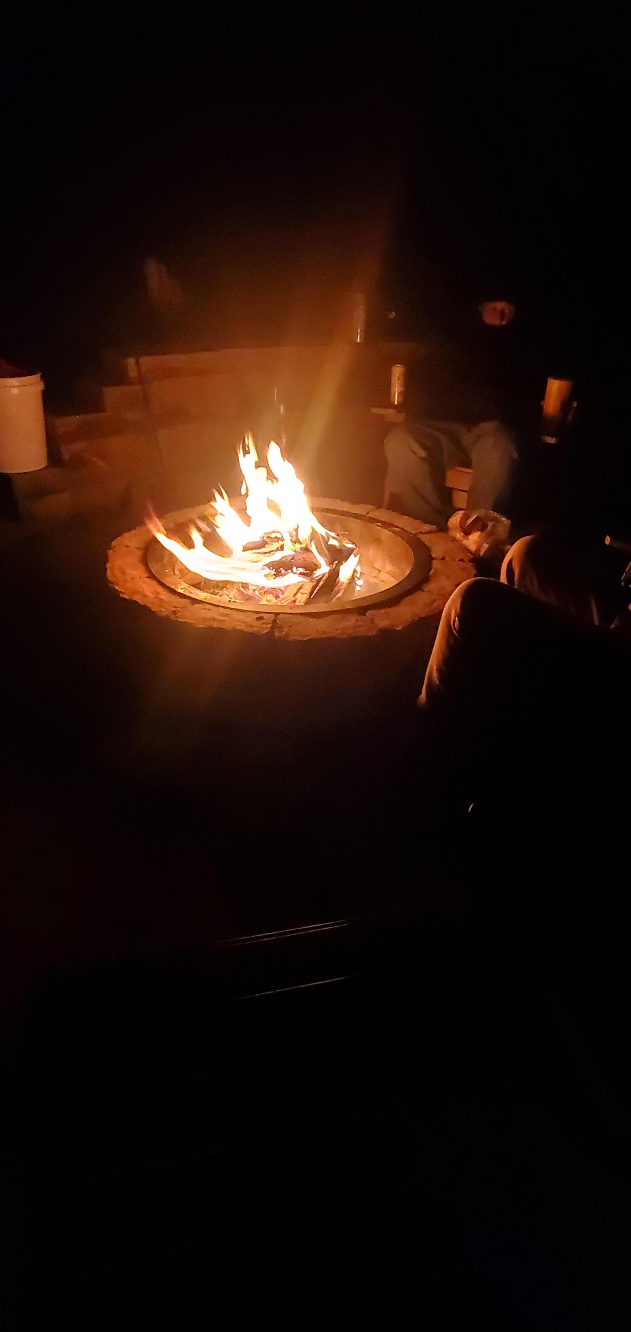 ☀ Access to the lower deck with multiple seating areas and a fire pit