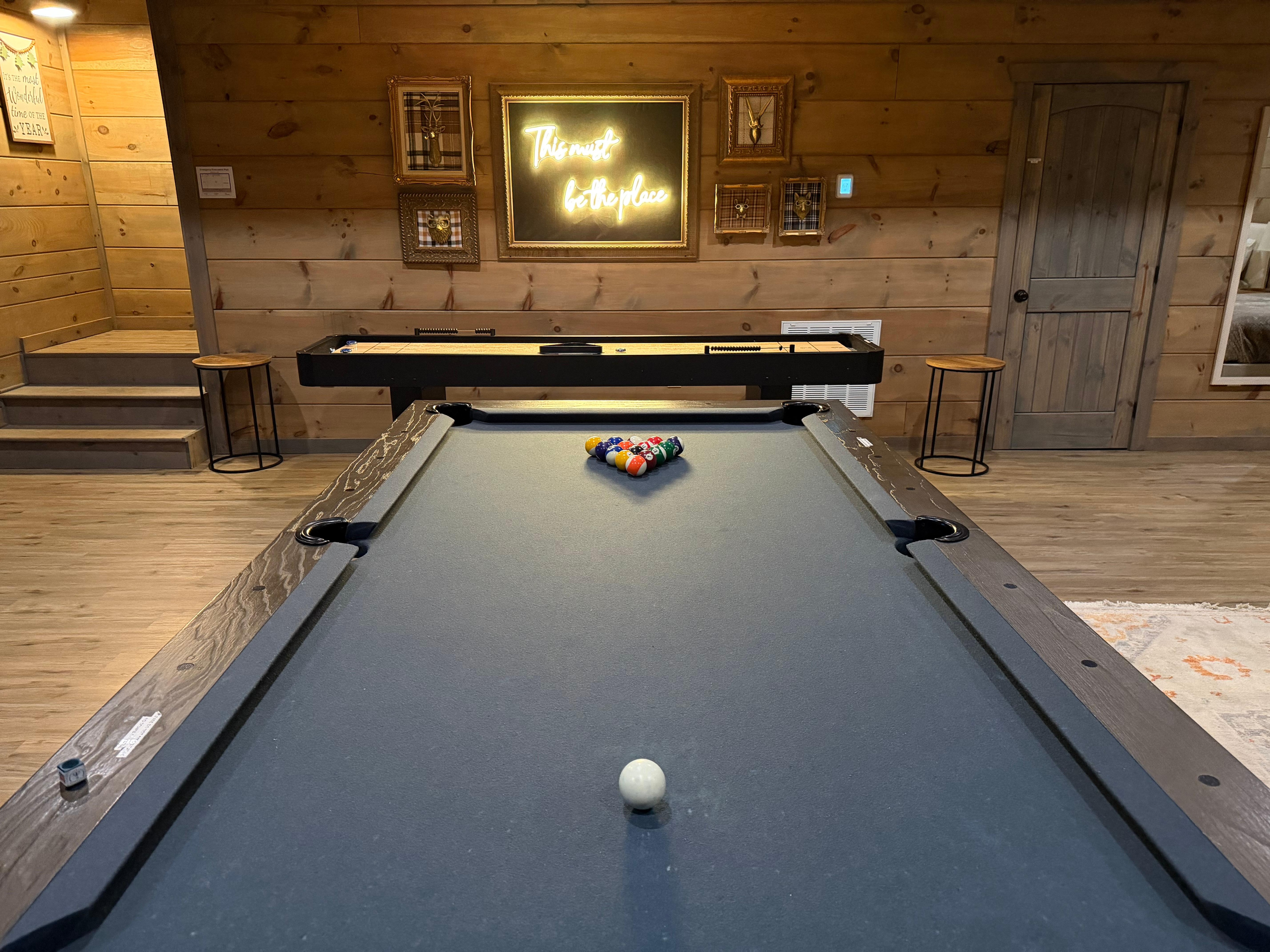 ☀ Pool Table, Shuffleboard Table, and Whiskey Barrel Arcade game for family fun and entertainment