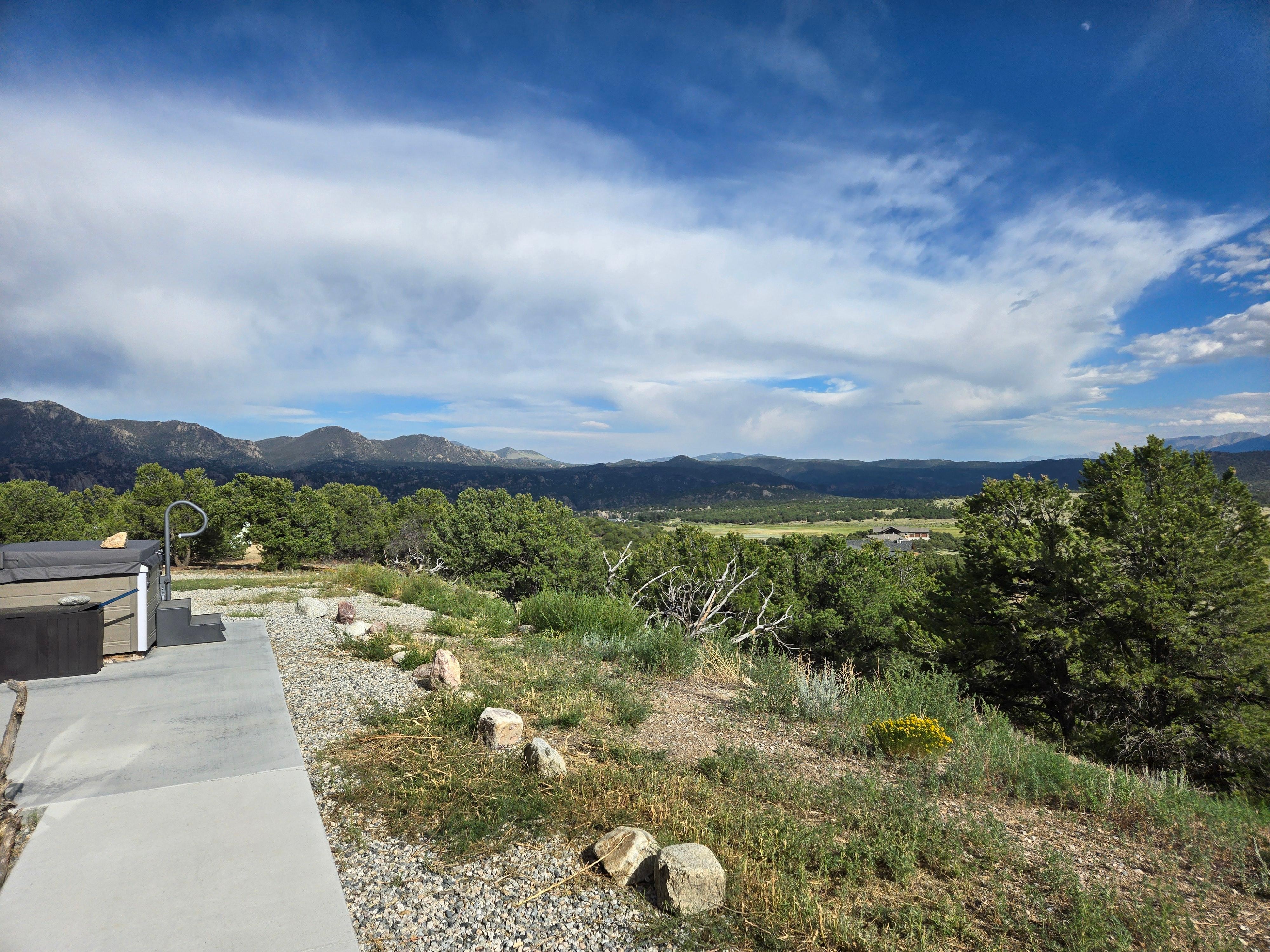 OUTDOOR LIVING: 2 + acres of mountain peak views, private front and back balcony views of the browns canyon and collegiate mountain views, private hot tub, secluded location, outdoor seating, propane grill and outdoor shower (except during heavy snow fall or winter months)