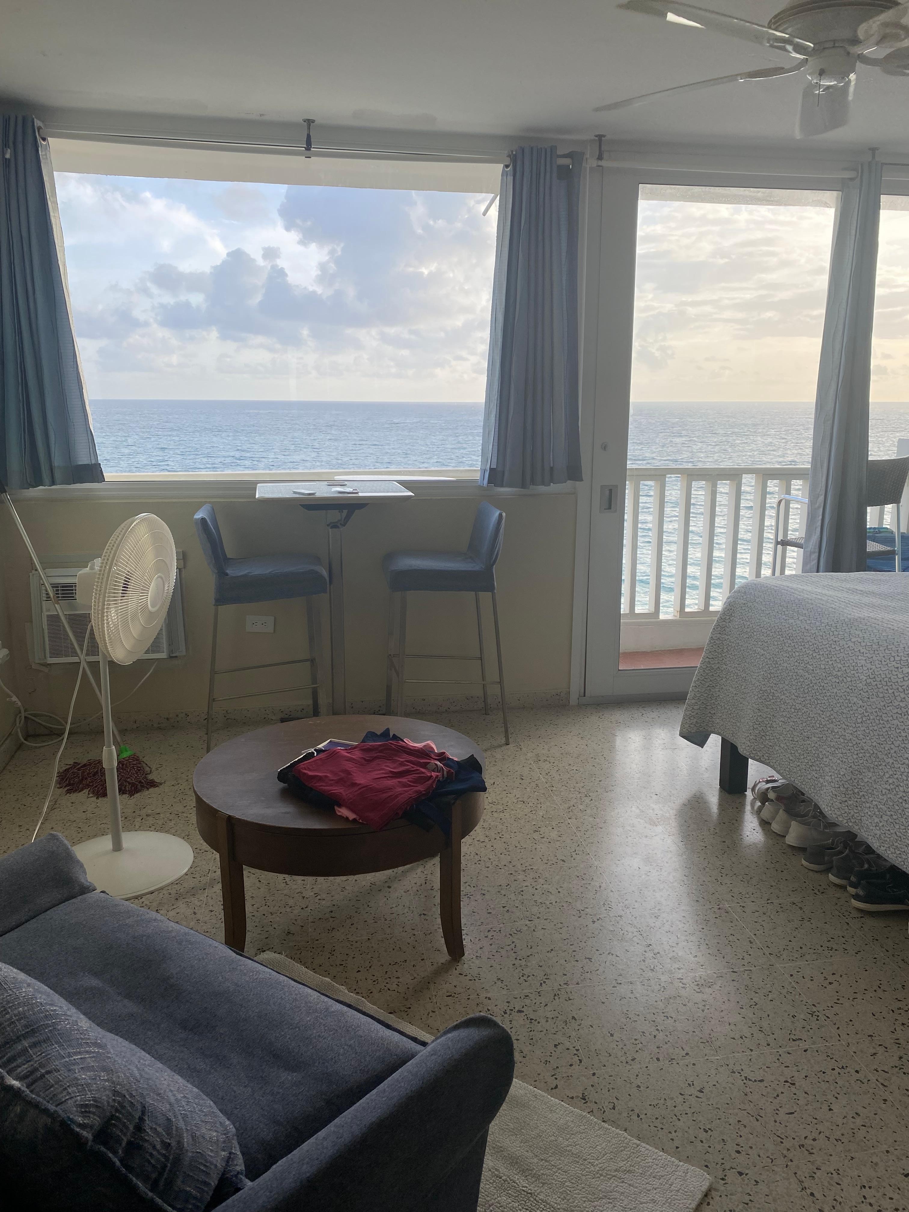 Dreamy ocean views, about which songs are written, this beach front studio makes for a romantic honeymoon or peaceful beach front vacation. If paddle boarding, kayaking or wind surfing are more your speed, they are available at the nearby Condado Lagoon, which is within walking distance. If you choose to maintain your personal fitness routine, while on vacation, you will find a gym just around the corner.