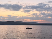 We love spending time at the cabin by the lake, taking in the sunsets, listening to the loons, kayaking to "blueberry island" and walking to Day's every morning for coffee. The last several years we have seen bald eagles fly by the dock too. This is always a thrill. We would say this is our "happy place."