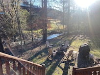 This was a great place to stay. Very beautiful cabin and land around it. Listening to the creek was wonderful. We loved our private pool, hot tub, the balconies with all the seating, our firepit, and the indoor gas fireplace. Everything was perfect for an early spring trip. Enjoyed traveling to the busier towns, and then coming “home” to relax!!