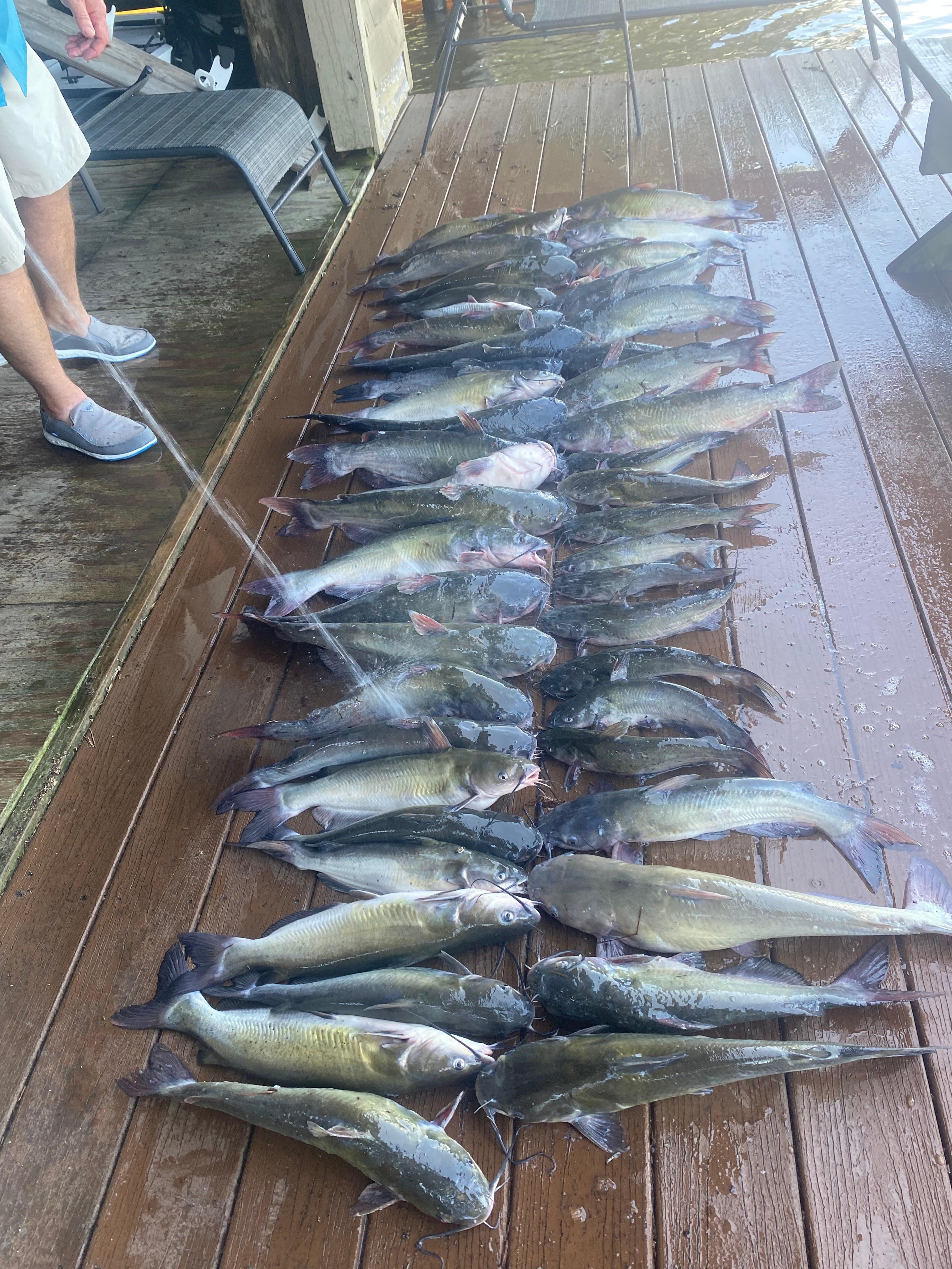 Had a great stay on the lake. This cabin has everything you would need for a small group or larger family vacation. Even when the lake is down you have water to the dock. Had a pretty succesful fishing trip just off of that dock. Bream, shell cracker, crappie and cats.