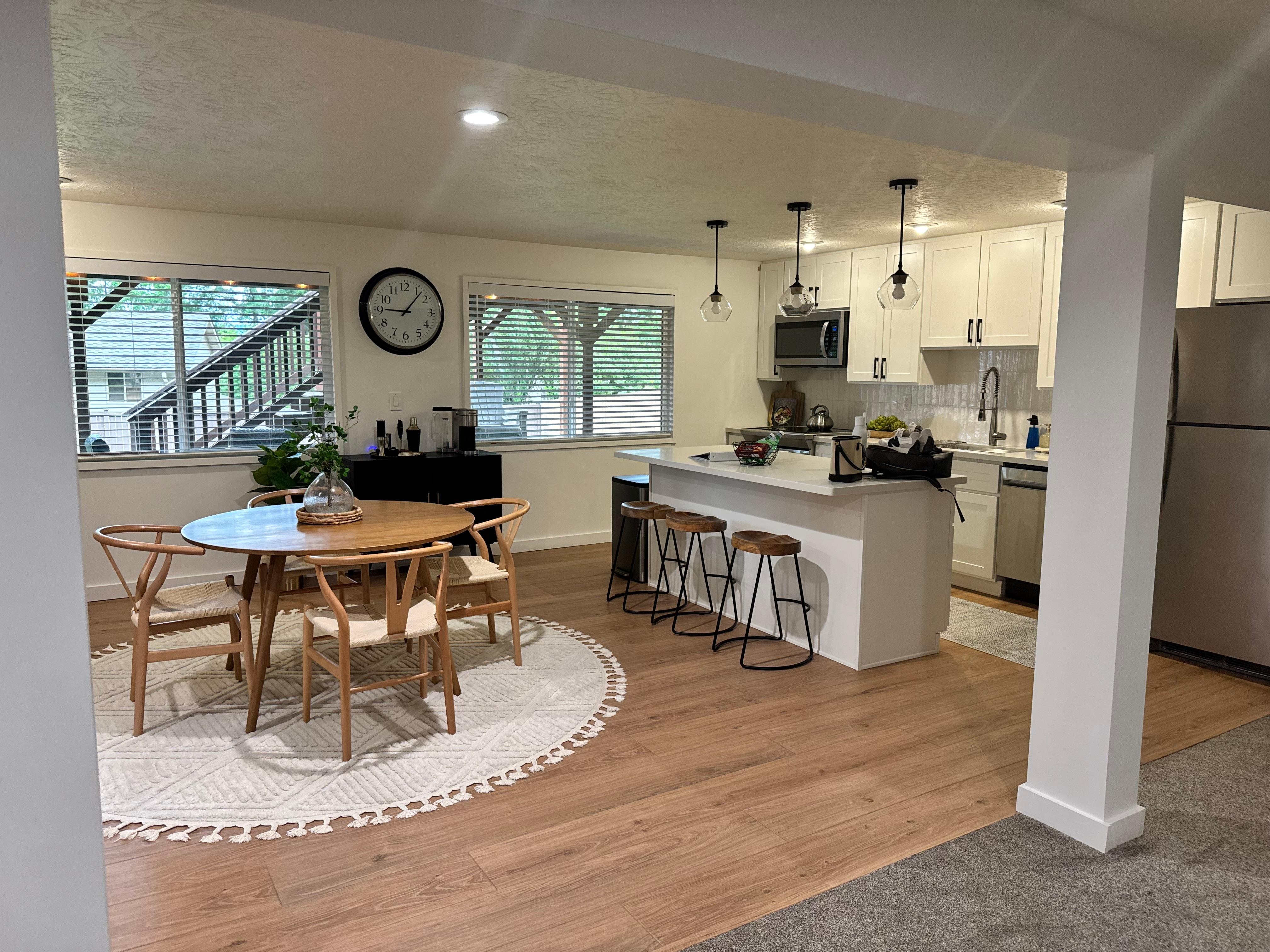 Enjoy comfort and charm in this newly renovated downtown Poulsbo apartment. Thoughtfully designed, it features plush King and Queen beds with buttery soft sheets, a fully stocked kitchen, and a cozy coffee bar. Nestled in a quiet neighborhood yet just steps from shops, bakeries, and restaurants, it's the perfect peaceful retreat with walkable access to all that Poulsbo has to offer.