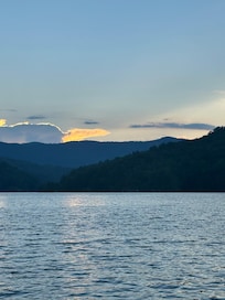 light of the setting sun go away on the mountains! You get incredible views from the front deck! The house was made using 175 year old hand hewn timbers - a mixture of oak, cherry, and chestnut along with southern heart pine flooring. The house has a personal touch to it, with unique trinkets placed in fun places around the house. Whether you are embarking on a scenic hike to explore hidden waterfalls, casting your line for a day of fishing bliss, skiing, tubing, or simply unwinding on a leisurely boat ride, Lake Jocassee enchants visitors with its timeless charm and undeniable allure, leaving a lasting impression on all who have the pleasure of experiencing its wonders.