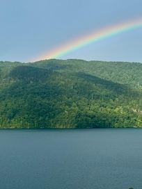 The House that represents the Spirit of Jocassee. Nestled amidst the tranquil beauty of the Blue Ridge Mountains, our home offers a haven that sleeps 10 and is directly on the waterfront of Jocassee with 600 feet of lakefront! The house includes a dock with an extended ramp, a boat slip if you decide to rent a boat with tie offs. A tram can bring you down to the floating dock, as well as bring you back up to the house, or you can walk down the stone steps (these are uneven please walk with caution). There are single and double seated kayaks, a canoe, life jackets, and water rafts/toys for your enjoyment! This 3,500 square foot house was built facing the East in 1995 by the owner and his two sons. You get to wake up to a beautiful sunrise and watch the