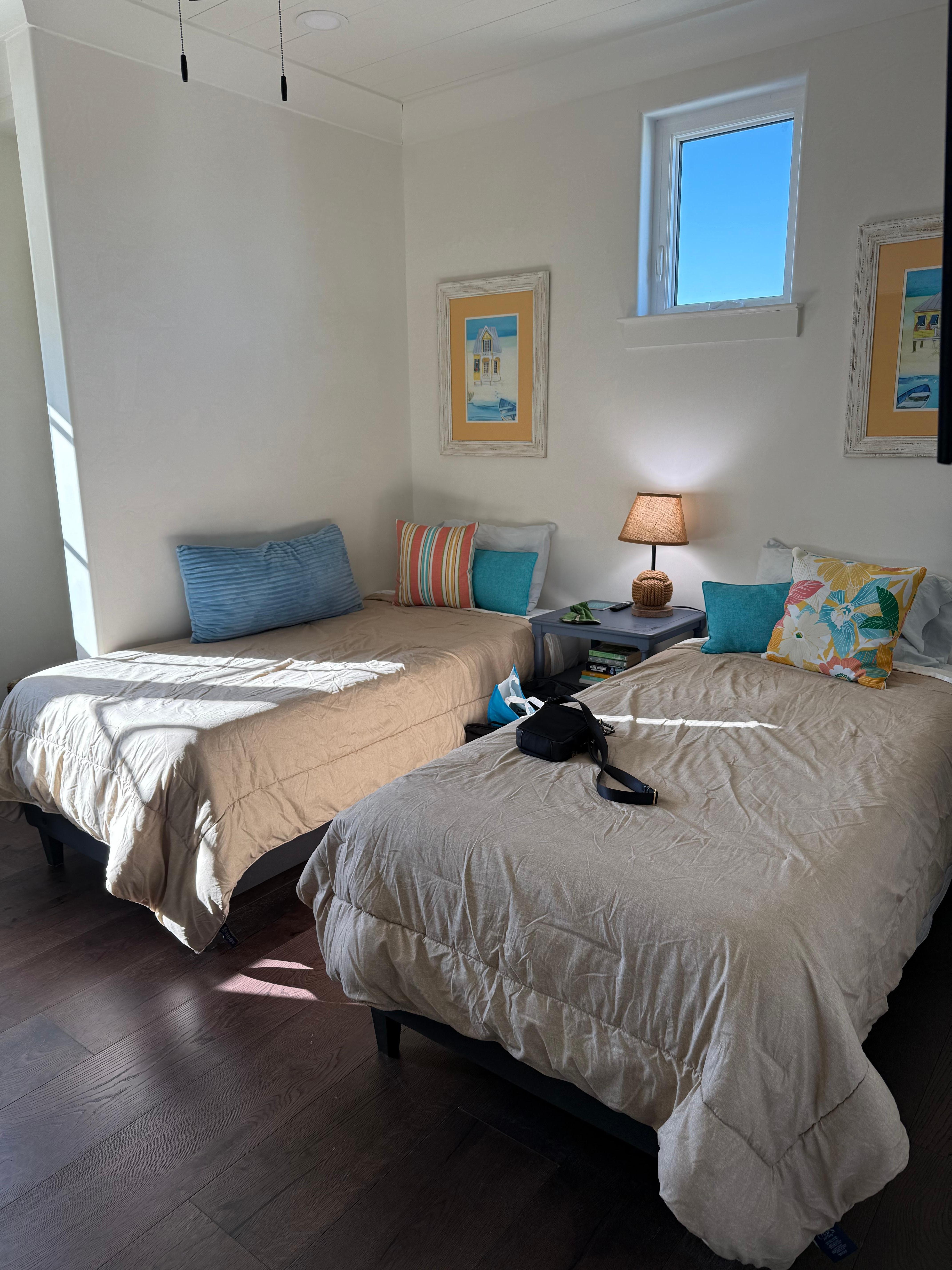 The stunning cottage features a soaring cathedral ceiling in the living/kitchen/dining area, unique finishes, and a one-of-a-kind feel--to make the time when you're not on the beach as enjoyable and relaxing as your time on the beach. The first-floor master suite has a king bed of luxurious memory foam, double sinks, and a large shower. The second suite is upstairs and offers either 2 twin beds (also memory foam) or they can be converted into a king on request. There is a queen sleeper sofa in the loft. Amenities include a high-def TV, wifi, large deck, outdoor shower, full laundry, gas stove, and much more.