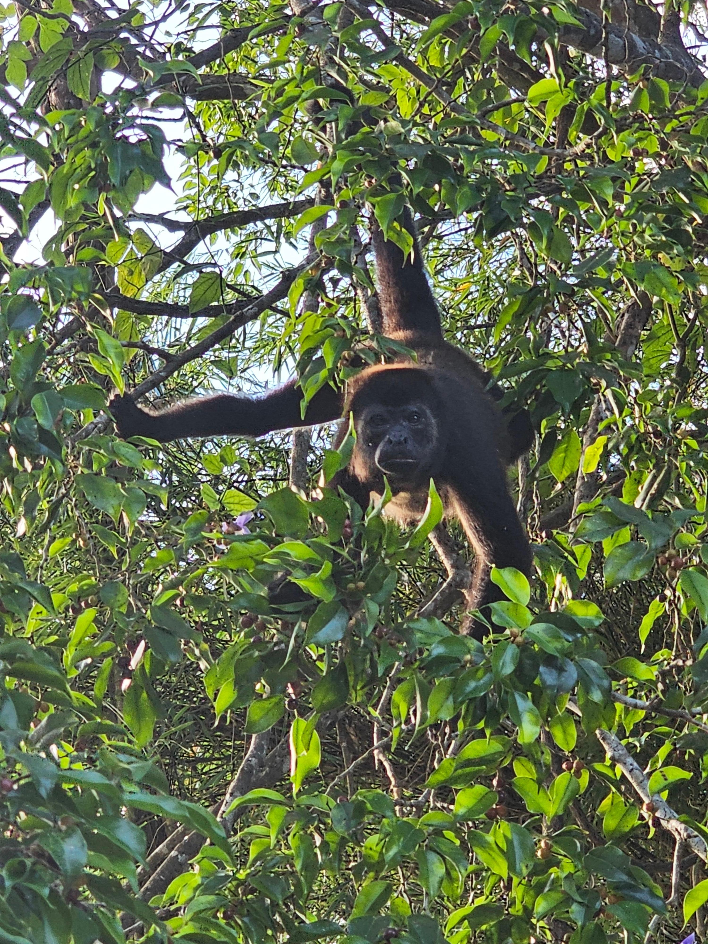 The house has a fabulous sunny communal pool located in tropical gardens a few minutes walk from the house. There are sun loungers and a shaded area for relaxing with patio furniture. White faced, and squirrel monkeys visit the area regularly, as well as sloths and tropical birds.