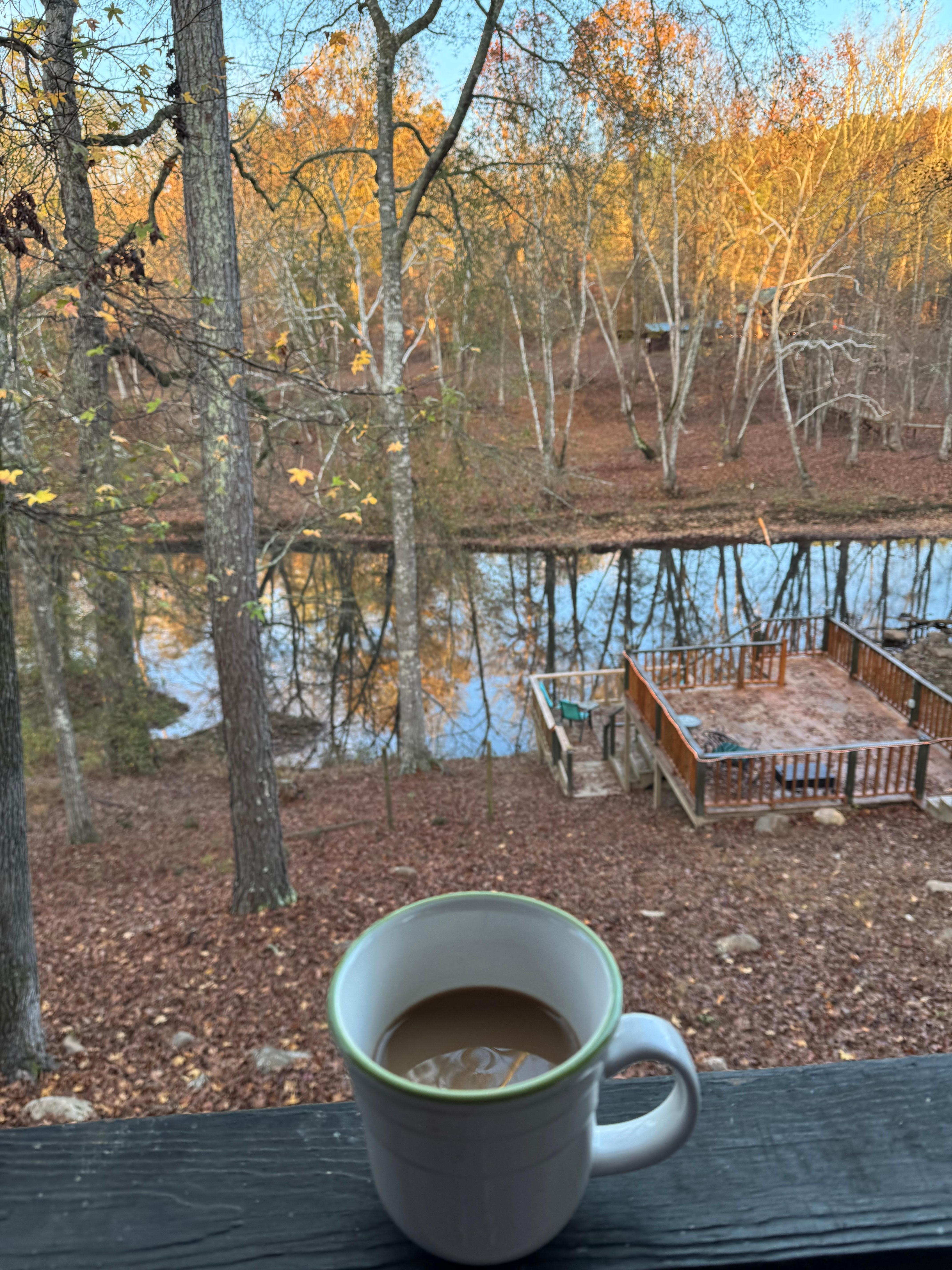 The cabin was adorable and the view was incredible. We enjoyed spending time on the split level deck and fishing and swimming in the river. It was quiet and peaceful, and even though there are "neighbor cabins" you felt very much "away from it all". We saw squirrels, rabbits, deer and some interesting insects. You can tell they have recently replaced a lot of deck boards so that area can be enjoyed.