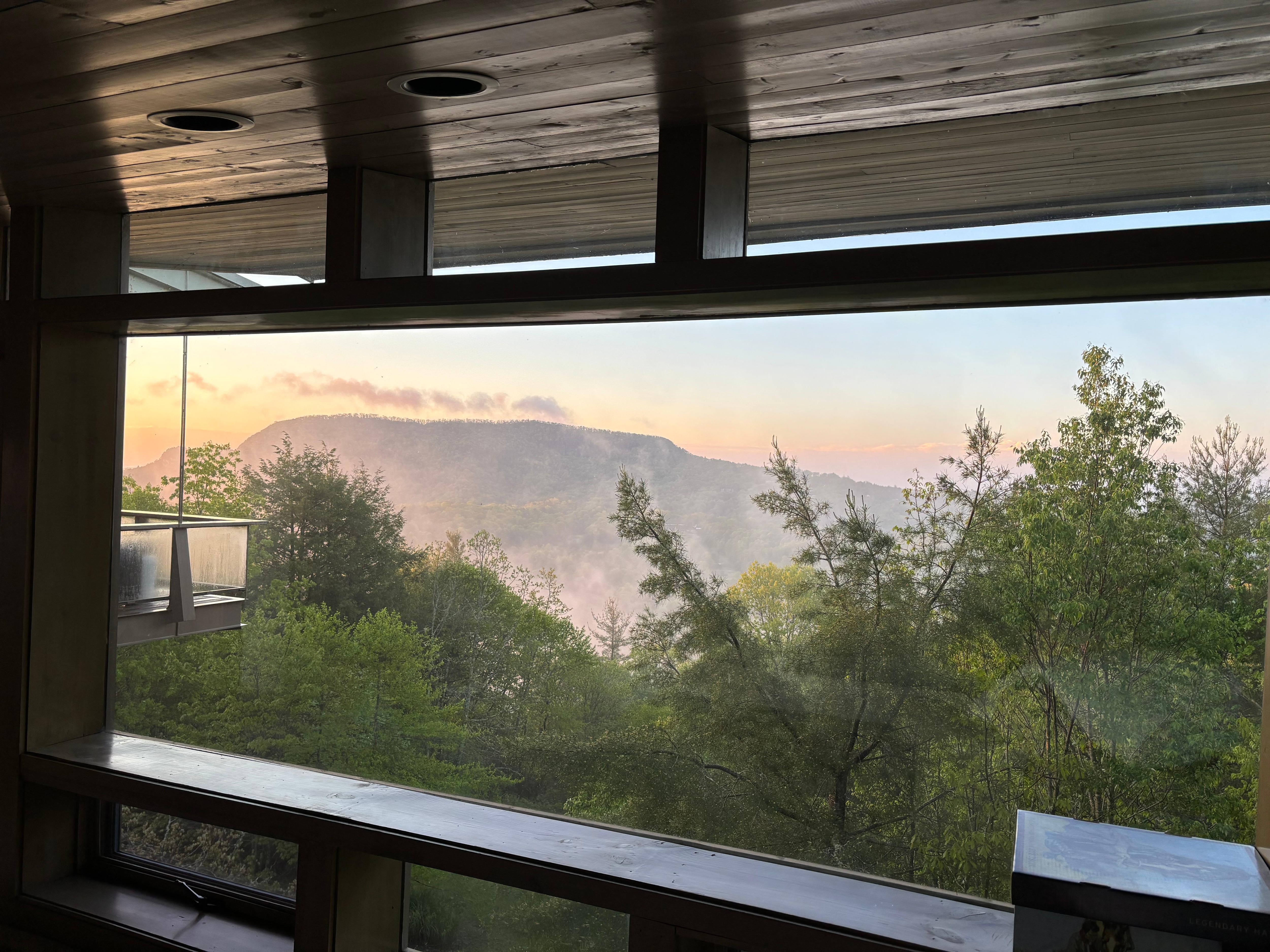 Live in an exquisite piece of artwork designed by famed modernist architect Jim Fox. The Kite House is designed to optimize spectacular views of Whiteside Mountain with cool summer breezes at 4500 feet. A photographer's paradise! Watch the light in the sky shift and cloud shadows roll across the Nantahala Forest valley with long-range mountain views from a 180 panorama on the back deck. Exceptionally unique modern home with light and airy floor plan brings a feeling of relaxation and restoration with views of the stunning Blue Ridge Mountains from every room. Conveniently located midway between Highlands and Cashiers, it's an easy 10 minute drive to be in the center of both towns. The home overlooks the majestic Whiteside Mountain, and is an easy drive to several popular hikes, waterfalls, and the locally owned boutiques, shops, and restaurants on Main Street Highlands. Great setting for family reunions, getaway with friends, retreats, and wedding groups. House is zoned to offer private spaces, while keeping everyone connected in the main living/dining/kitchen area. The views throughout the house are awe-inspiring looking out towards the Blue Ridge Mountains from every room in the house. Walls adorned with beautiful original artwork from around the world. Main level has two living rooms, chef's kitchen, dining table to seat 8-10 guests, wet bar, work desk, and sliding door access to deck. Lower level has game room/den, second kitchen with two bedrooms and private deck. -Main floor master bedroom offers king size bed, TV, en-suite with tub, shower, two toilets, bidet, vanity, spacious closet, sitting area, private balcony, main deck access -Main Floor Bedroom 2 offers queen size bed, en-suite with shower, toilet, TV, two closets, vanity, drawers, and sliding door access to main wrap-around deck -Lower Level Master Bedroom offers king size bed, en-suite with steam shower, vanity, closet, drawers, large TV, direct access to lower deck -Lower level bedroom -Three full size beds with en-suite, jetted bath tub, TV, direct access to lower deck, private work from home desk/office Amenities include: 2-storey stacked stone fireplace with gas log, chef's kitchen, gas BBQ grill, entertaining equipped, board game table with dozens of popular games, telescope, outdoor dining table, child's toy closet, bridal suite, and much more. Whole house available with exception of garage, utility spaces, and locked storage closets. Owner/Caretaker is available via phone, text, email, or scheduled visit Cowee Ridge is a gated community midway between Highlands and Cashiers. Cowee Ridge Road is a curvy single lane road that climbs 500 feet to the crest of Cowee Mountain. The neighborhood is quiet and friendly, with a 15mph speed limit. Guests are expected to be courteous and respectful of neighbors at all times. Please refer to the House Manual for HOA guidelines for sharing Cowee Ridge Road. Property is located 10 mins from Highlands and 10 minutes to Cashiers Parking for 6-8 cars, with covered parking for 2-3 vehicles Families with small children should always keep an attentive eye on kids around the property- Staircases, steep rock backyard, tall deck, etc present hazards to toddlers (and intoxicated adults). Guests are also responsible to abide by Bearwise recommendations for bear country. -Pets are allowed with prior approval and agreement of pet policy. -Small gatherings of up to 20 guests permitted with prior approval.