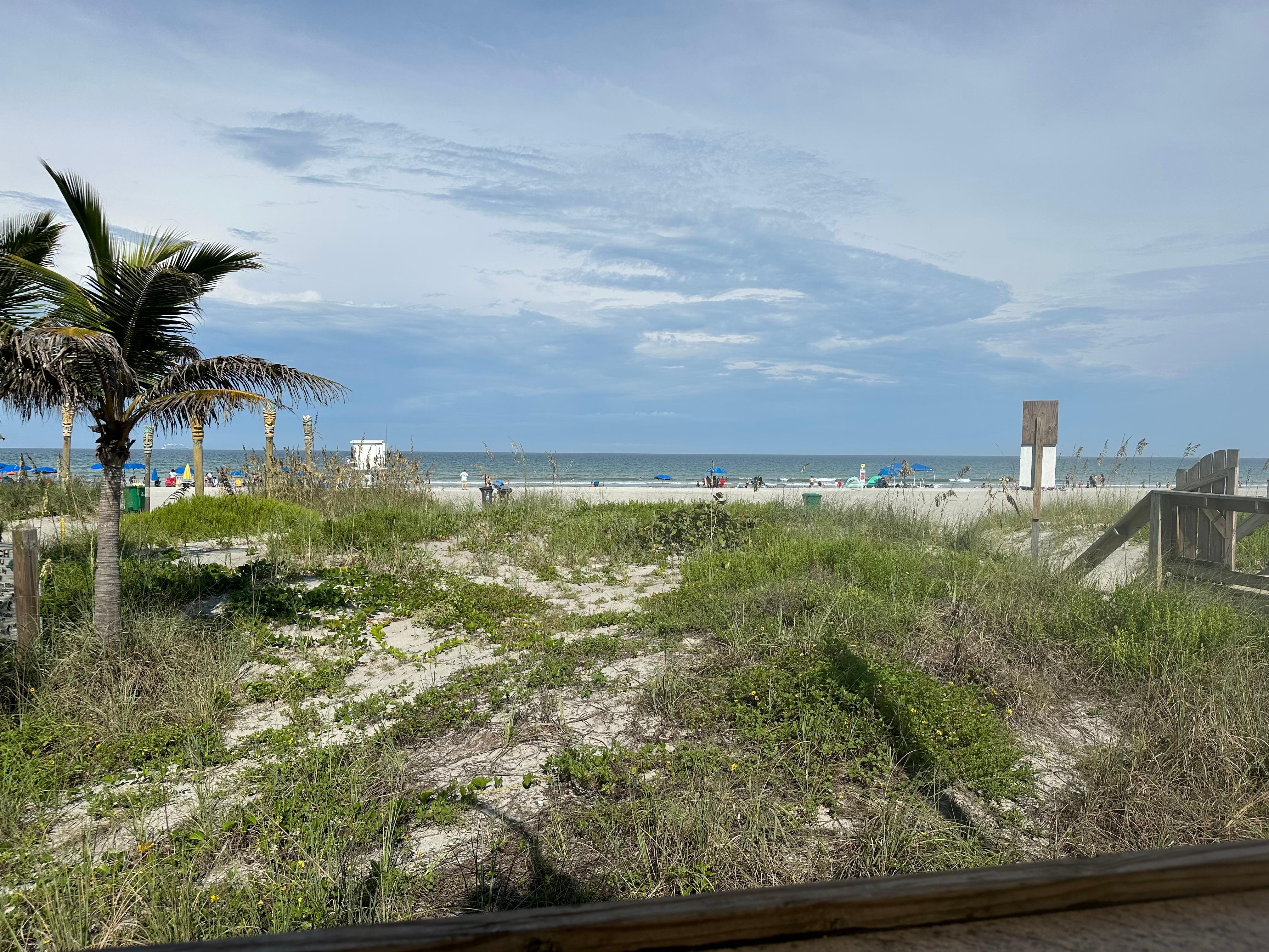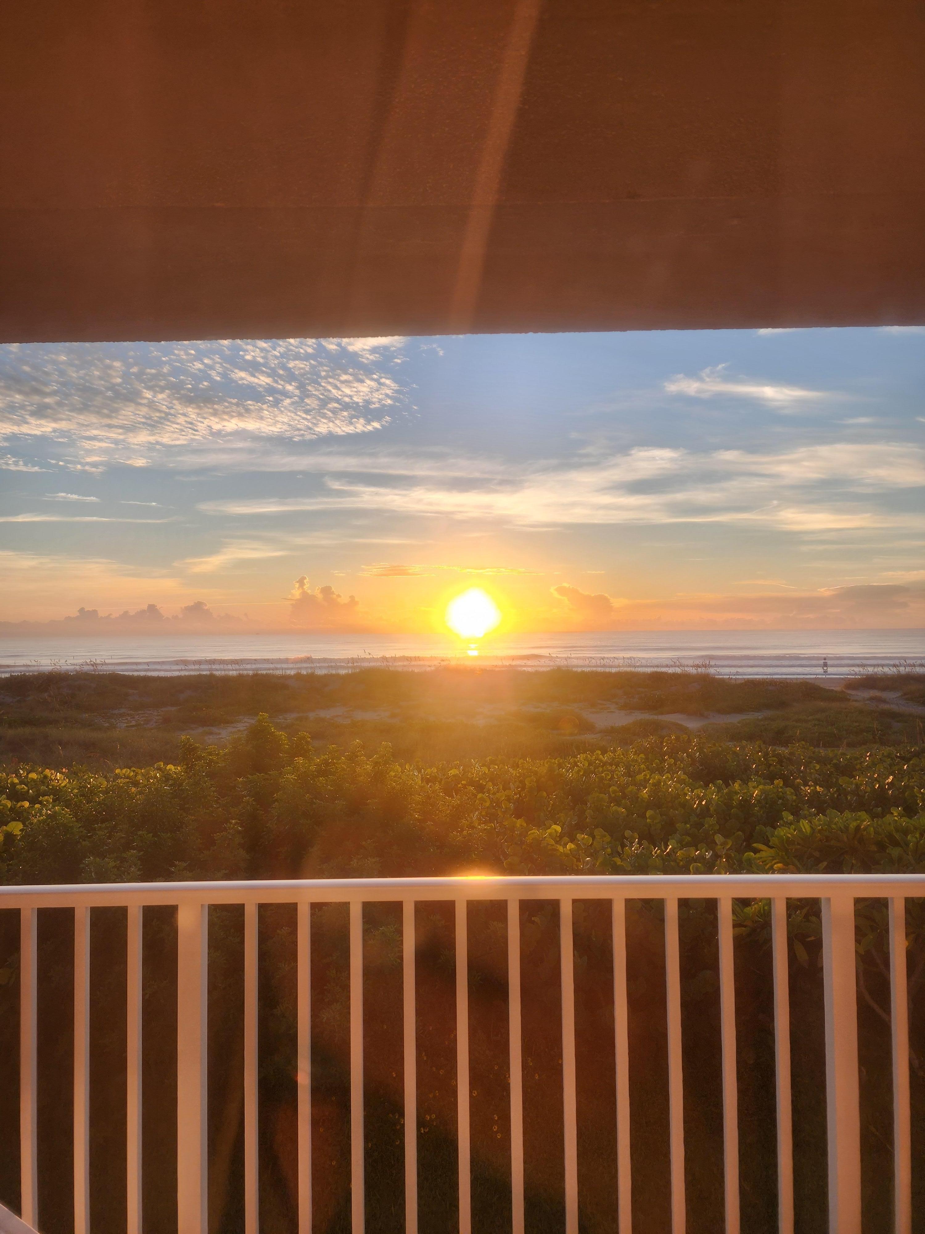 Savor panoramic ocean views from a private balcony of this beachfront second-floor apartment. It is a one-bedroom, one-bath condo, perfect for two guests but can sleep up to four. The apartment features a full kitchen, queen bed and a queen-sized futon couch, two smart TVs with cable, WiFi connection, in-unit washer/dryer and a free parking space. The Triton Arms building is conveniently located in the heart of Cocoa Beach, within short walking distance to many restaurants, shops, and bars.