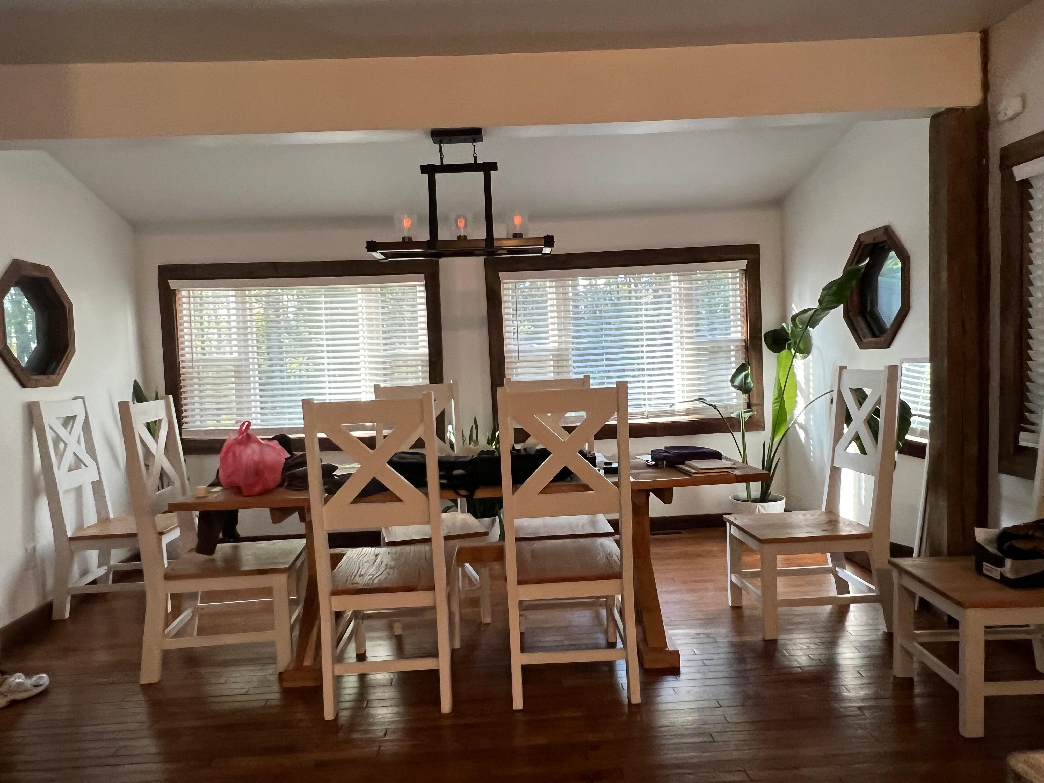 This home is designed for comfort, connection, and relaxation with plenty of room to spread out and feel at ease. Inside you will find a fully stocked kitchen with stainless steel appliances, a coffee bar, and everything you need to prepare and enjoy meals together. There's a custom dining room table that seats 8, breakfast nook for 6, and a kitchen island with seating for 4. With 2 cozy family rooms, including a wood burning fireplace which we provide the wood.