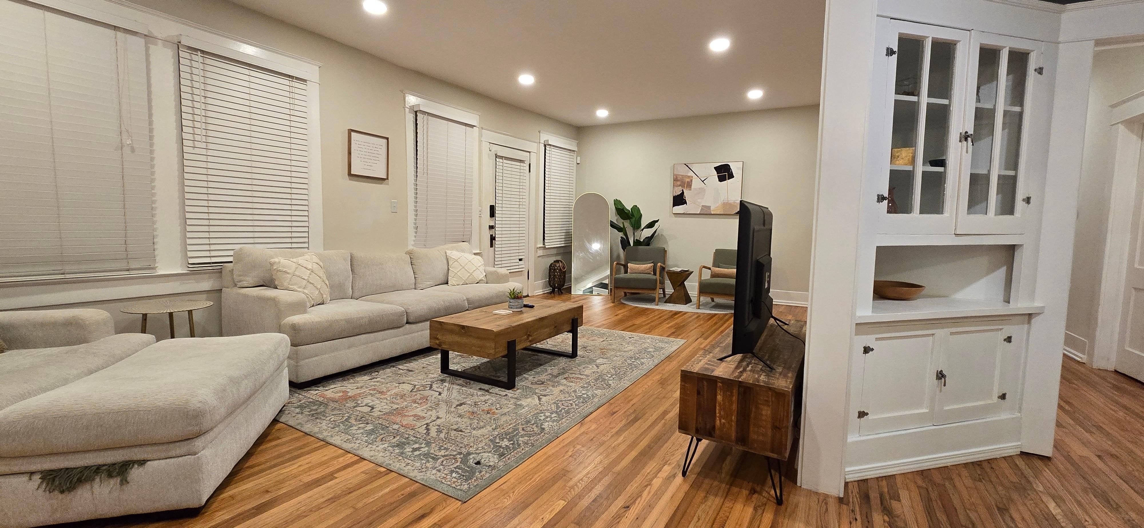 Our quaint 3-bed house, steeped in 100 years of history, awaits you in the family-friendly Crestwood neighborhood, just a short 10-minute drive from Downtown Birmingham. Picture yourself in the fully fenced backyard, complete with a firepit for roasting marshmallows, ample outdoor seating, and an array of games for endless fun. On the inside, expect a 1360 sq. foot mid-century modern decorated interior, complete with HDTVs in each bedroom, speedy 396 Mbps Wi-Fi, and chic furnishings!