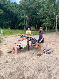 Nestled amidst the lush greenery of towering pines and overlooking the sparkling waters of Marl Lake, our 5-bedroom lake home offers a haven of relaxation and rejuvenation. Our property boasts direct access to the lake with a private beach and dock.