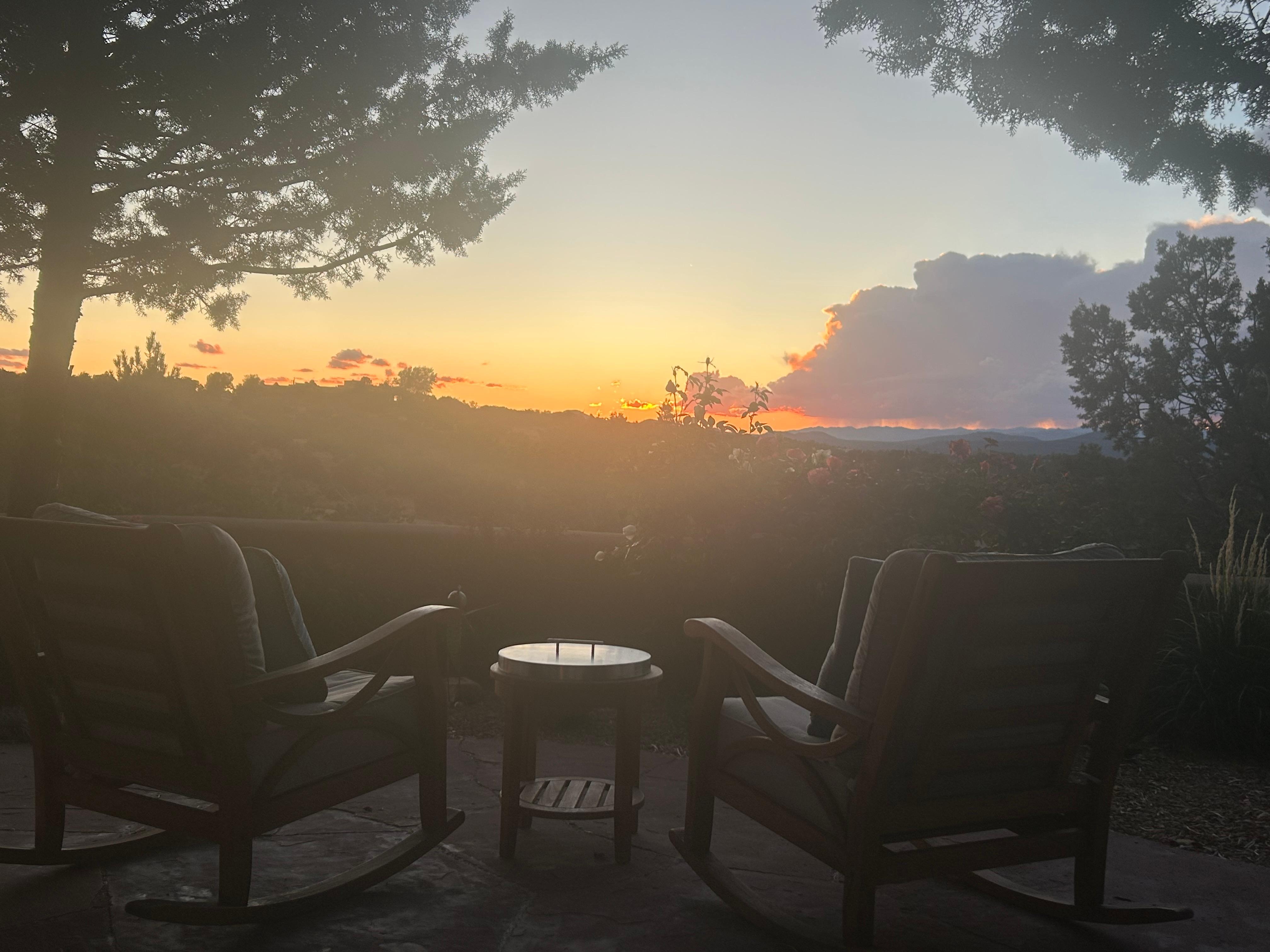 Staying at this beautiful setting less than 20 min from downtown Santa Fe was a highlight of our trip. The view from the front patio, which is well appointed for relaxing with friends, was wonderful. Mountains layered to the horizon changed as the sun set over cocktails. The home is large and well appointed. Six of us - three couples - shared the home and it could have accommodated another couple easily.