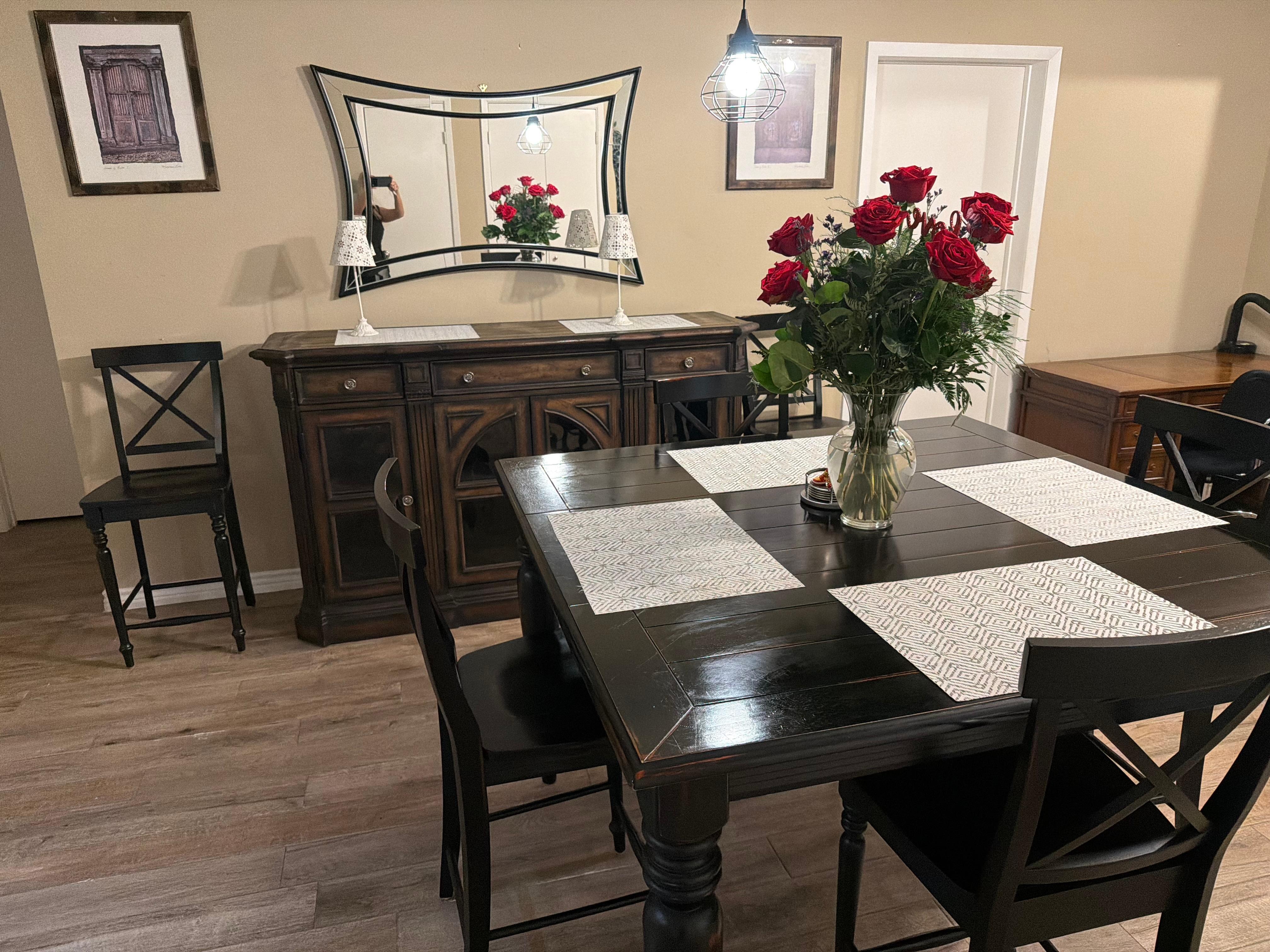 Updated furnishings and appliances ensure modern home comfort and convenience throughout your stay. The well-appointed kitchen is equipped to satisfy even the most discerning of home chefs. The open-concept design seamlessly blends the living room and dining area. You can stream shows and movies on the smart TV or catch up on some remote work at the dedicated desk. The primary suite boasts a large private bathroom and an enclosed patio that is separate from the main outdoor space.