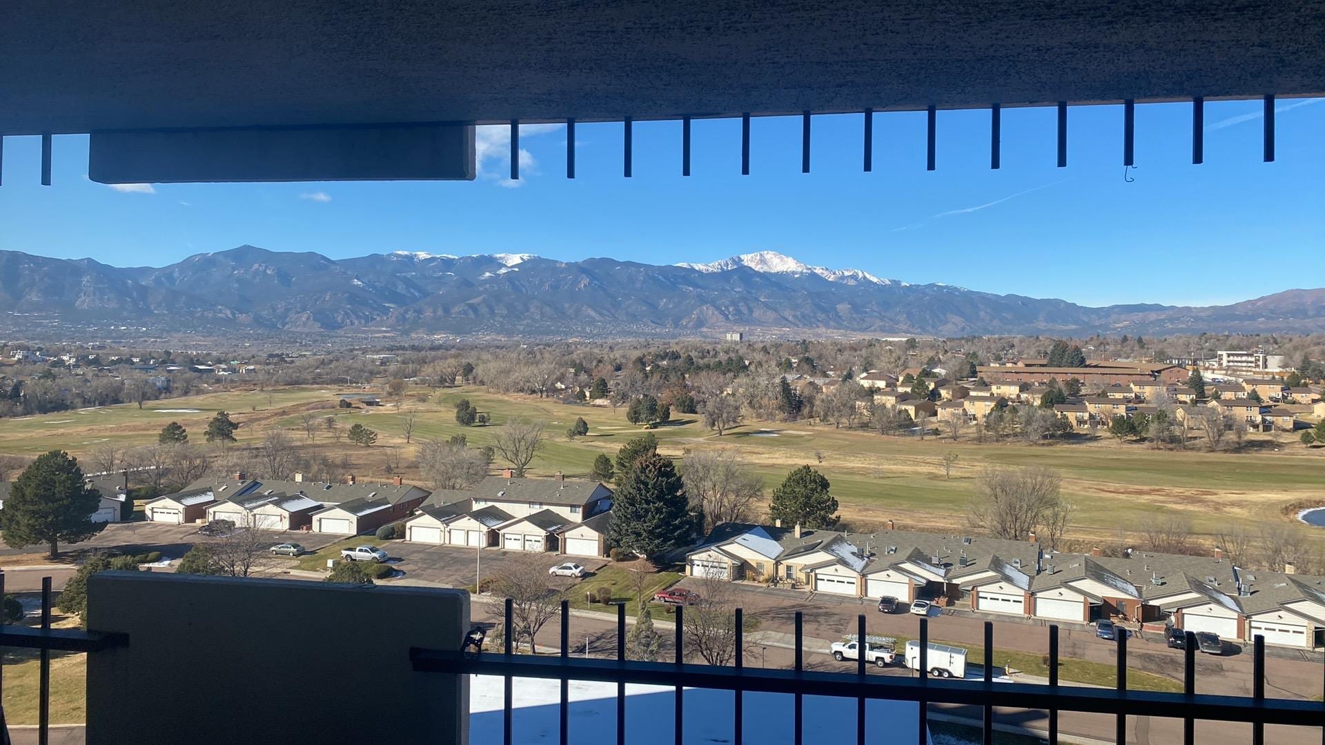 Wake up to a spectacular view of Pike's Peak from your bed! The sunrises and sunsets from this 1150 sq ft condo are indescribable. A 48-foot long balcony is accessible from both bedrooms and the living room and dining area, providing one of the best views of the mountains in all of Colorado Springs. It is situated in an older iconic hotel building that holds a lot of history and has a clear unique view of Pike's, The Manitou Incline, Garden of the Gods, and more.