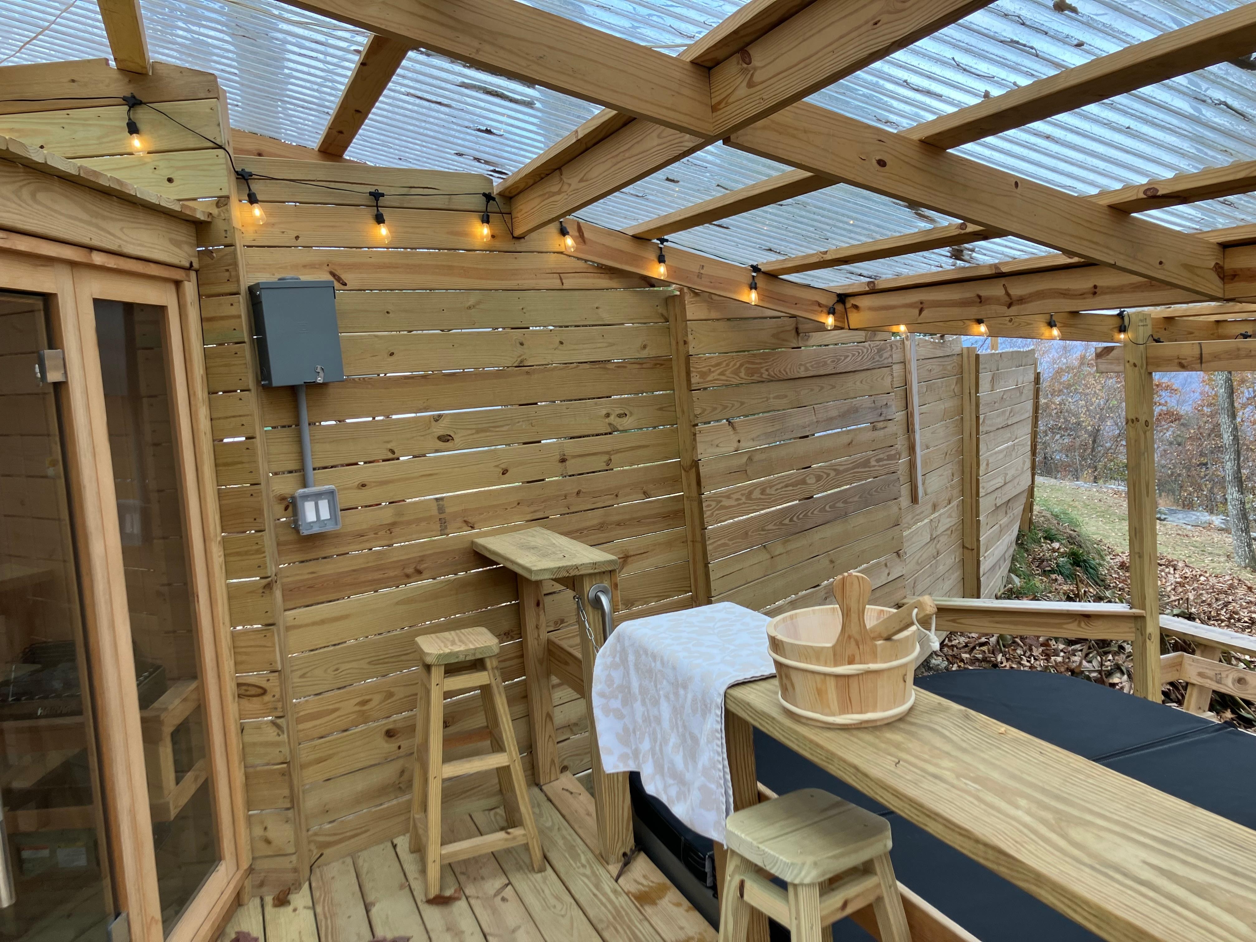 The villa’s exterior is just as inviting, with a spacious deck where you can relax and soak in the tranquil surroundings. Enjoy your morning coffee while watching the sunrise over the mountains or unwind in the evening with a glass of wine as the sun sets. The outdoor space is equipped with comfortable seating, making it the perfect spot to relax and take in the fresh mountain air.