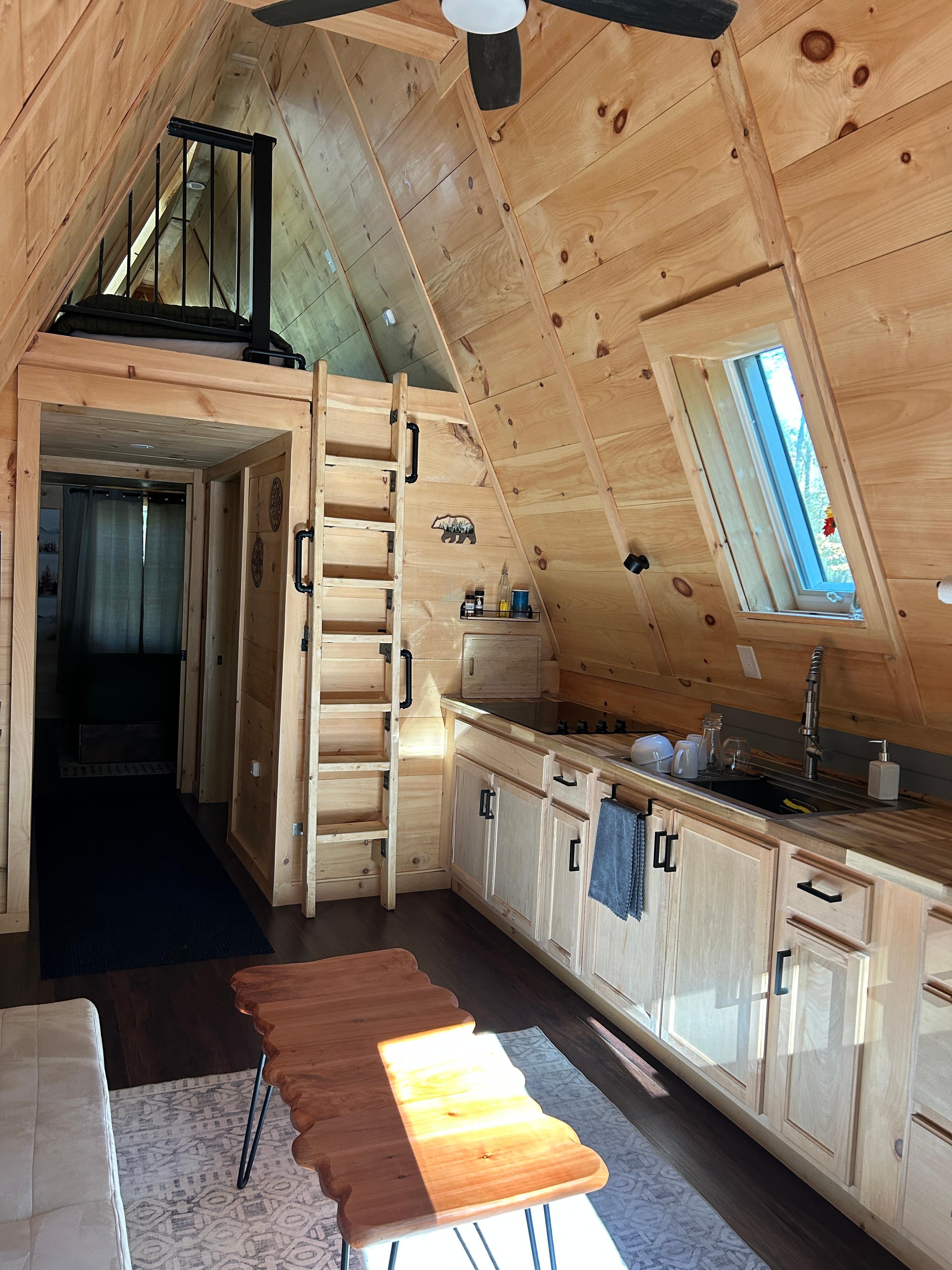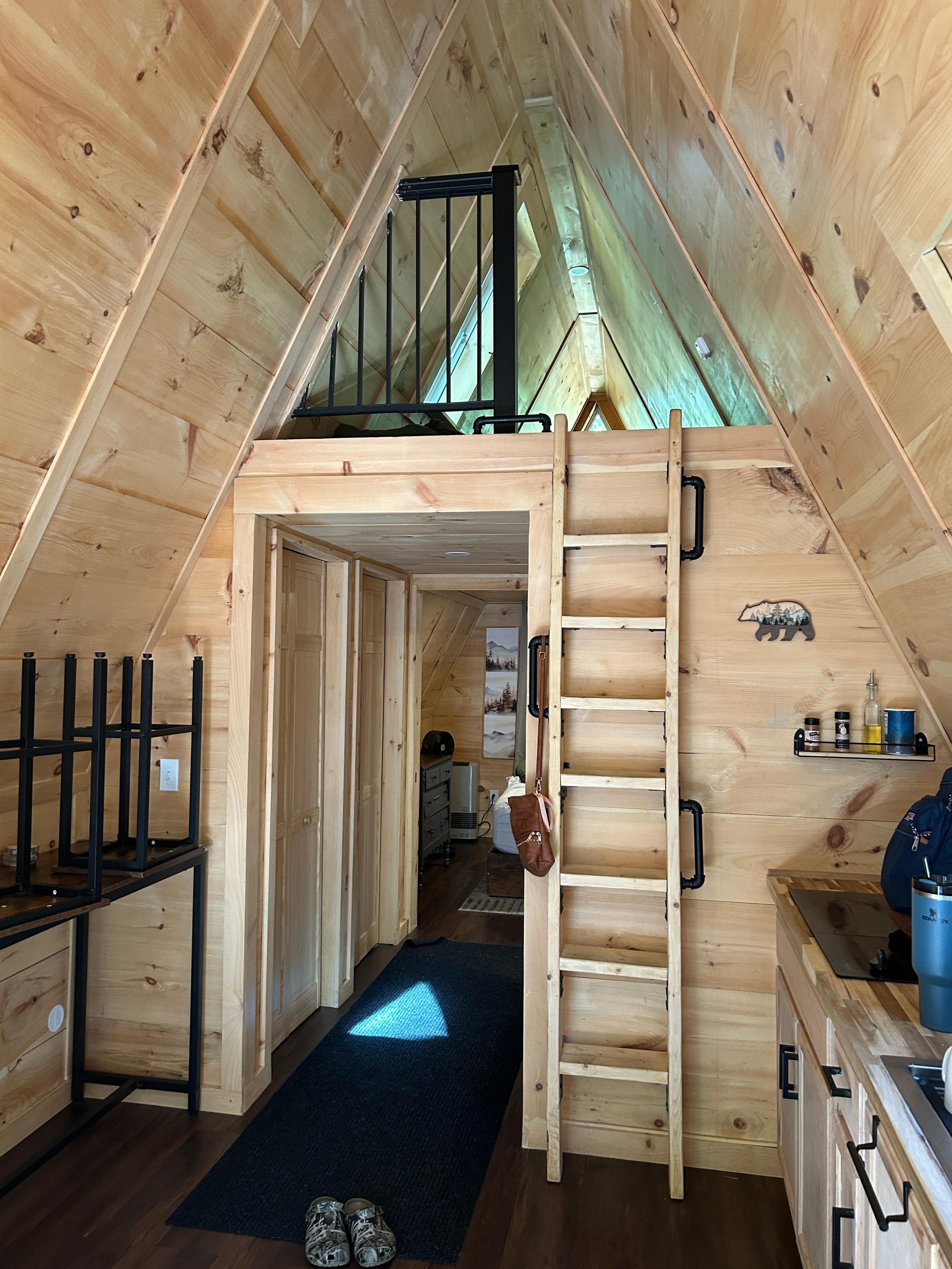 The campus includes a loft with a view, walking trail, free/overflow parking! A luxury, campy feel makes this A frame a perfect getaway for you and your family.