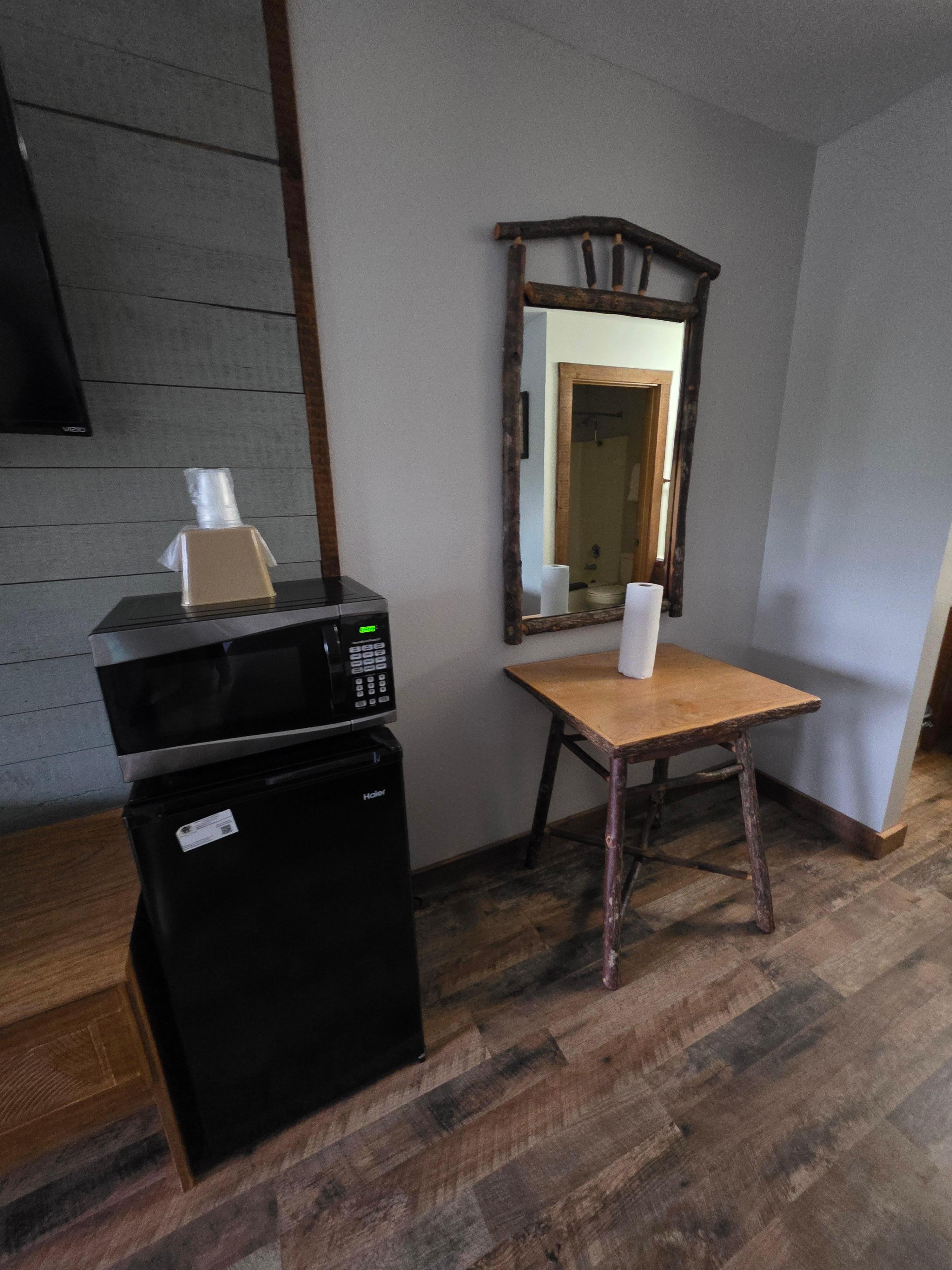 Unit 211 is a Double Queen Room. There is a mini fridge, microwave and coffee maker in this room.