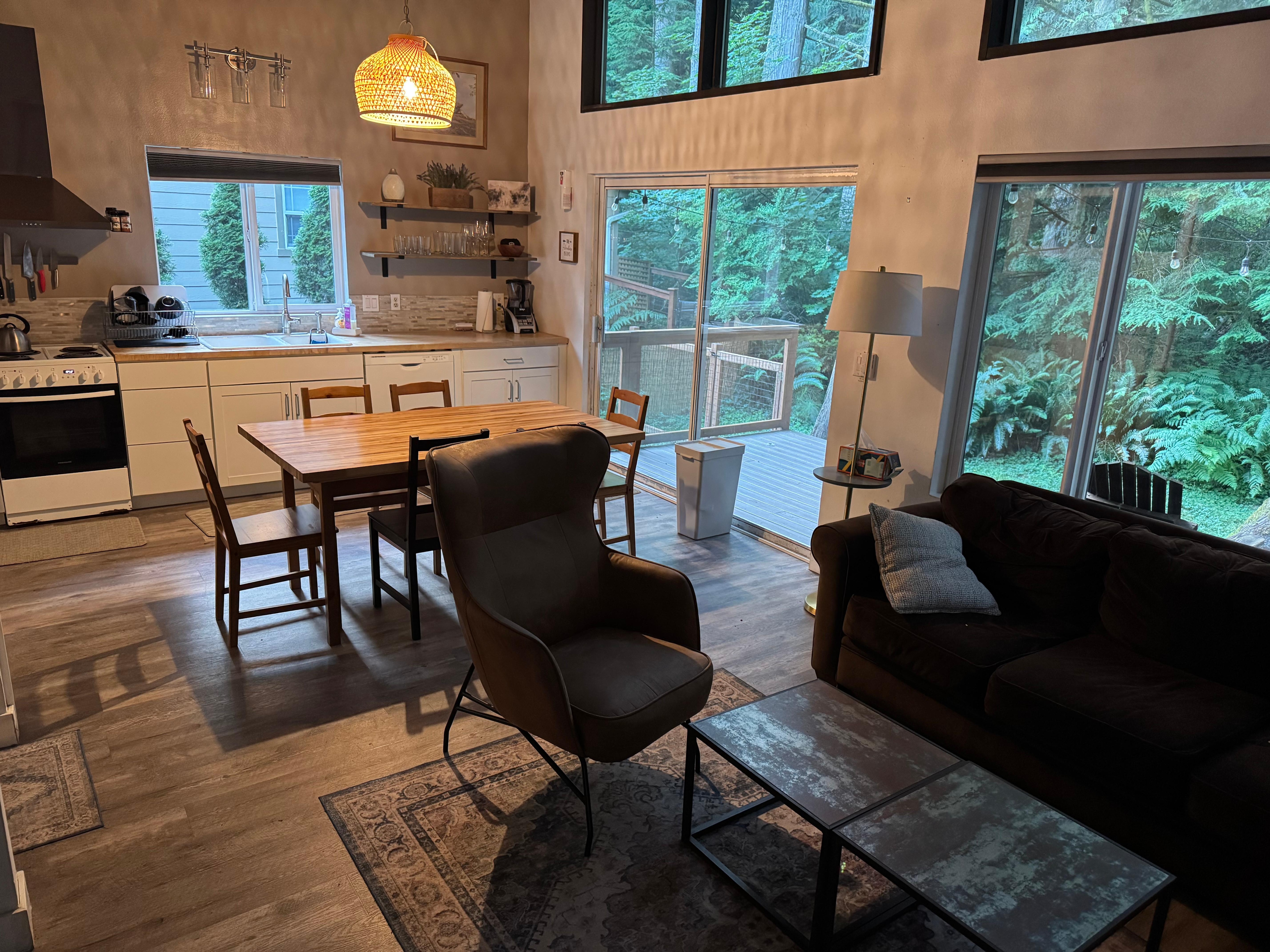 We used this property as a basecamp for our Ski to Sea relay team. It provided everything we could need: fenced area for dogs, stocked kitchen for preparing meals, showers and towels, space for our several cars, bikes and boats, even a hot tub to recover. We loved the beautiful forested yard. There are hiking and biking trails in walking distance from the front door. Overall a lovely place to stay!