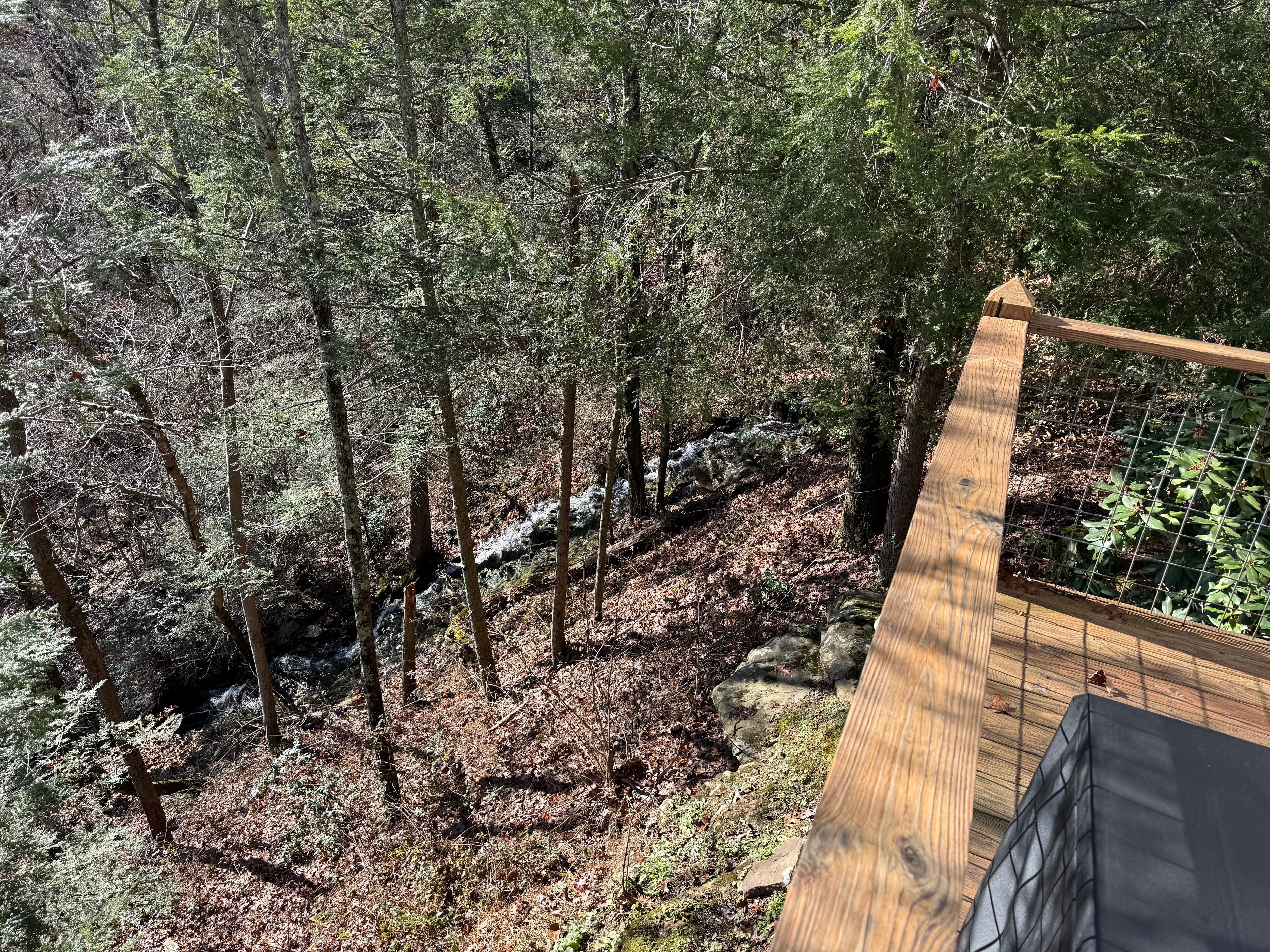 A triple deck is literally perched on a bluff DIRECTLY above the majestic Sycamore Falls, treating you to breathtaking views of the surrounding mountains, lush forests, and the incredible sounds and sights of the Falls all day and night.