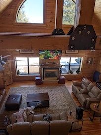 This luxurious modern log cabin is nestled in the Alpine forest. It features intimate spaces for reading and relaxing as well as large group gathering areas, perfect for family dinners and game nights. Main cabin accommodations include 4 bedrooms: Primary bedroom (king), bedrooms 2 and 3 (BR2-King bed and BR3-Queen bed), bedroom 4 (Queen), Loft area (twin size trundle bed). Each Main Cabin bathroom has granite counter tops with granite shower surrounds. For larger parties, we do offer the basement which has 2 additional bedrooms and can sleep 10 additional guests: 2 bedrooms - bedroom 5 (King, Twin bunk/trundle bed) and bedroom 6 (1 King and one full bed) and a 1 3/4 bathroom and living room sofa bed ($50.00 additional per night Property Fee). The main part of the house has three baths and a powder room. Cell phone service is available for most providers (eg Verizon). Free WiFi. No smoking. Dogs upon approval; additional fee of $20.00 per pet per day required.