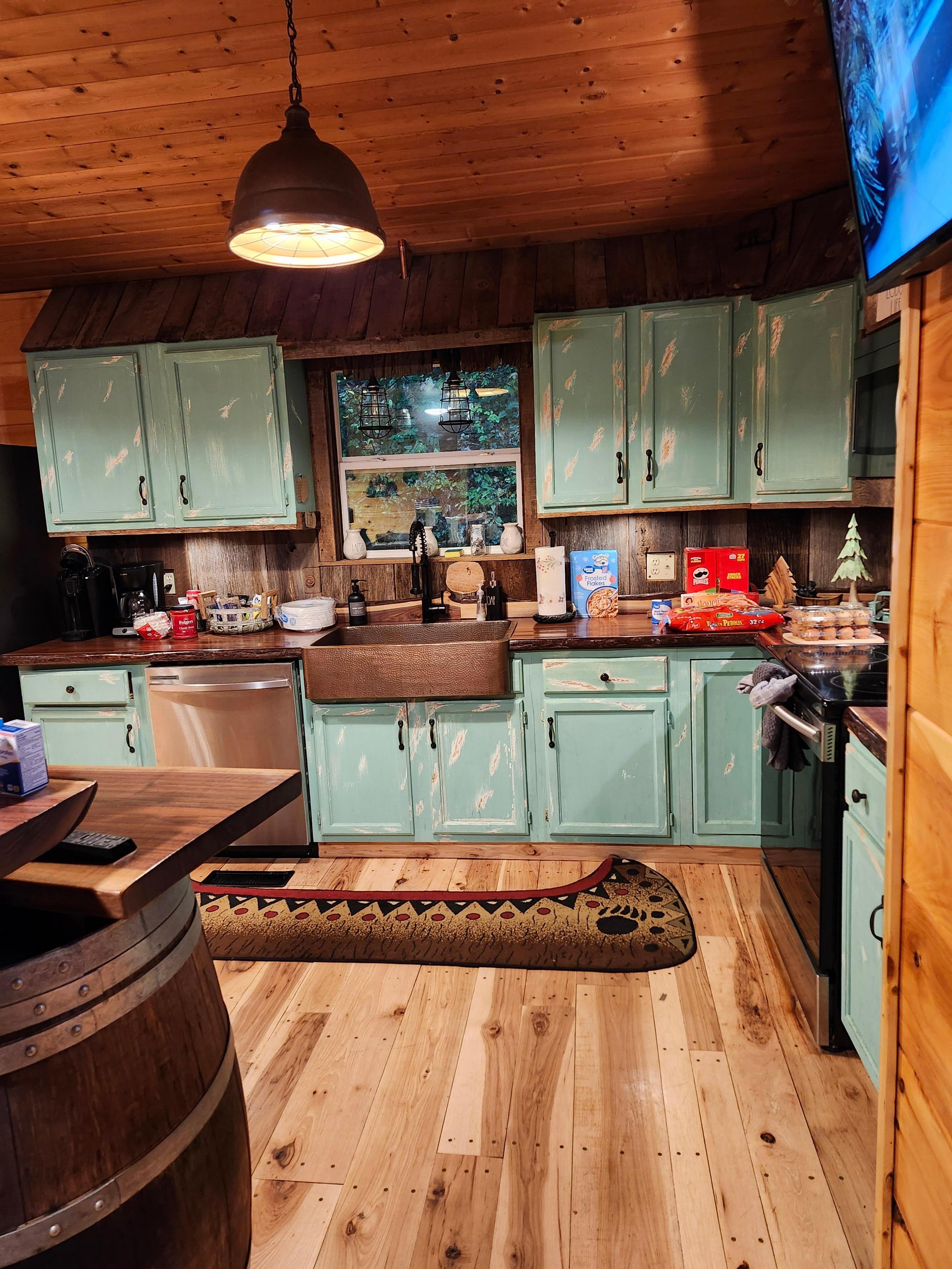 Welcome to Whispering Bear Creek! This property is not like any other! There are so many personalized touches in this rustic property you'll find yourself interested in all that it has to offer. You have two bedrooms on the upstairs level, and one bedroom on the bottom level! Sit outside and listen to the small stream located in the front yard (there are no fish), and roast some marshmallows! Downstairs has plenty of entertainment for everyone, between pool, table shuffleboard, foosball, and 4 arcade games!