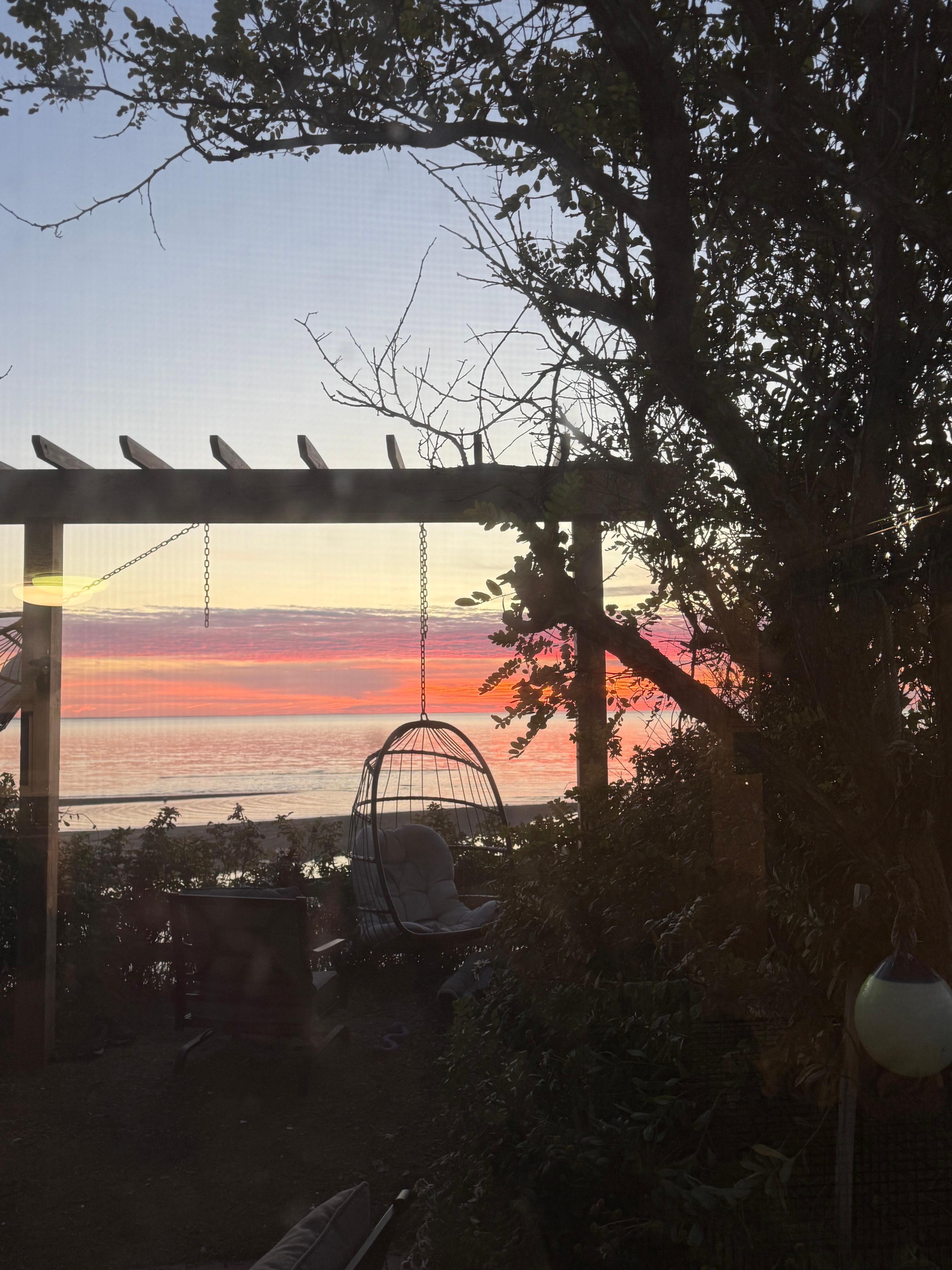 The cottage's small, yet fully stocked kitchen allows for easy meal preparation, while its outdoor amenities truly shine. Guests can unwind on the patio furniture, gather around the fire table as the sun sets over the bay, or sway gently on the "sunset" swings, soaking in the breathtaking views over Cape Cod bay.