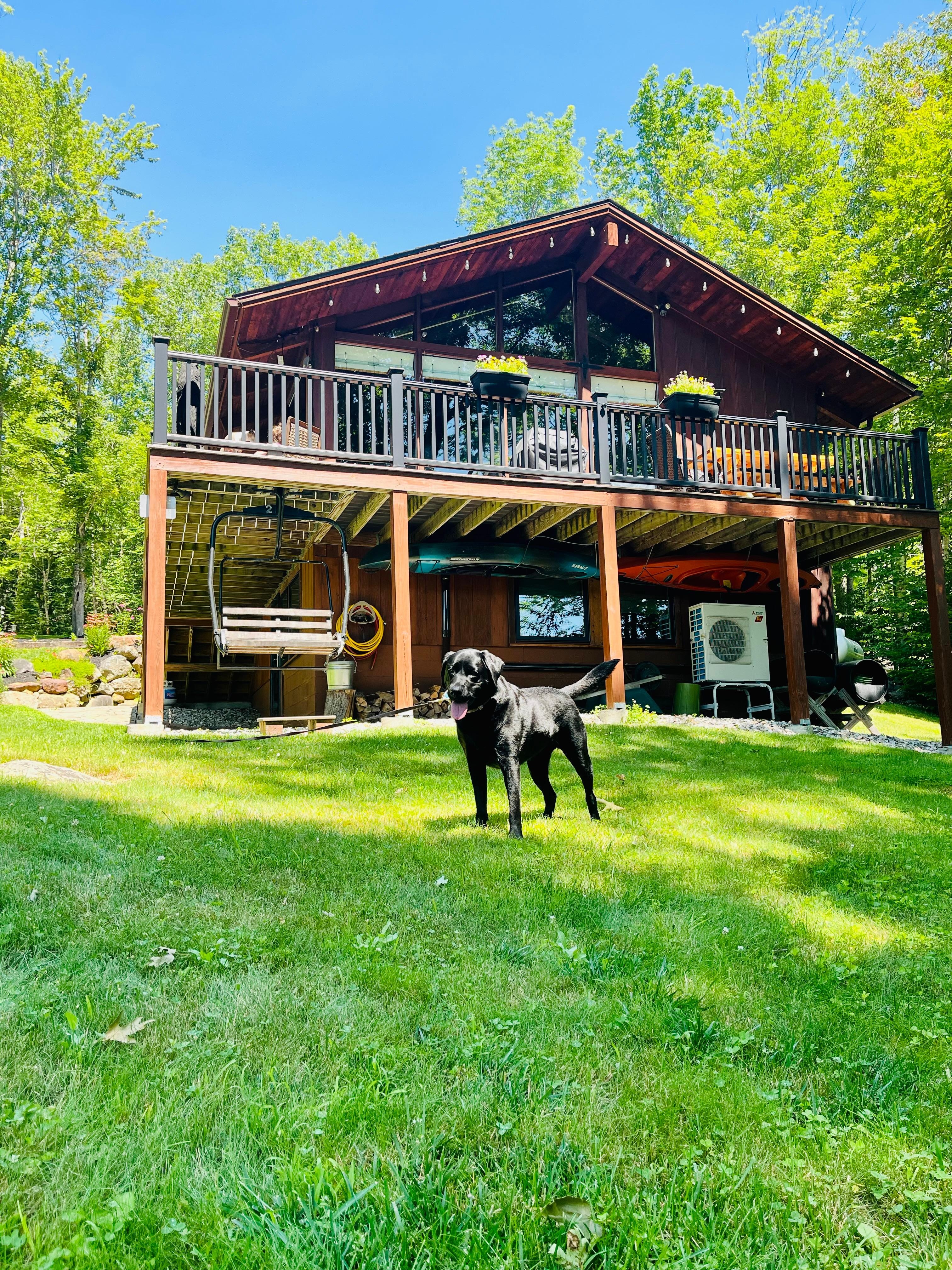 with all modern amenities. 1 mile north of Jackson Village in heart of White Mountains and approx. 10 minutes to either Wildcat Mountain or Attitash.5 minutes to Story Land. Home has 2 bedrooms each with queen log beds, master bedroom has king log bed and additional living/sleeping area with twin over full log bunk bed. Six person maximum occupancy, no exceptions. Great mountain views from all glass wall in dining/living area. Granite kitchen with everything you will need for cooking. Large fieldstone fireplace in living room and cozy gas fireplace in master bedroom. All bedrooms have flat screen TVs, washer and dryer on lower level. Large wrap around deck with gas grill and table for 6 on the deck. All Linens provided, firewood, wifi, land line phone and cable.