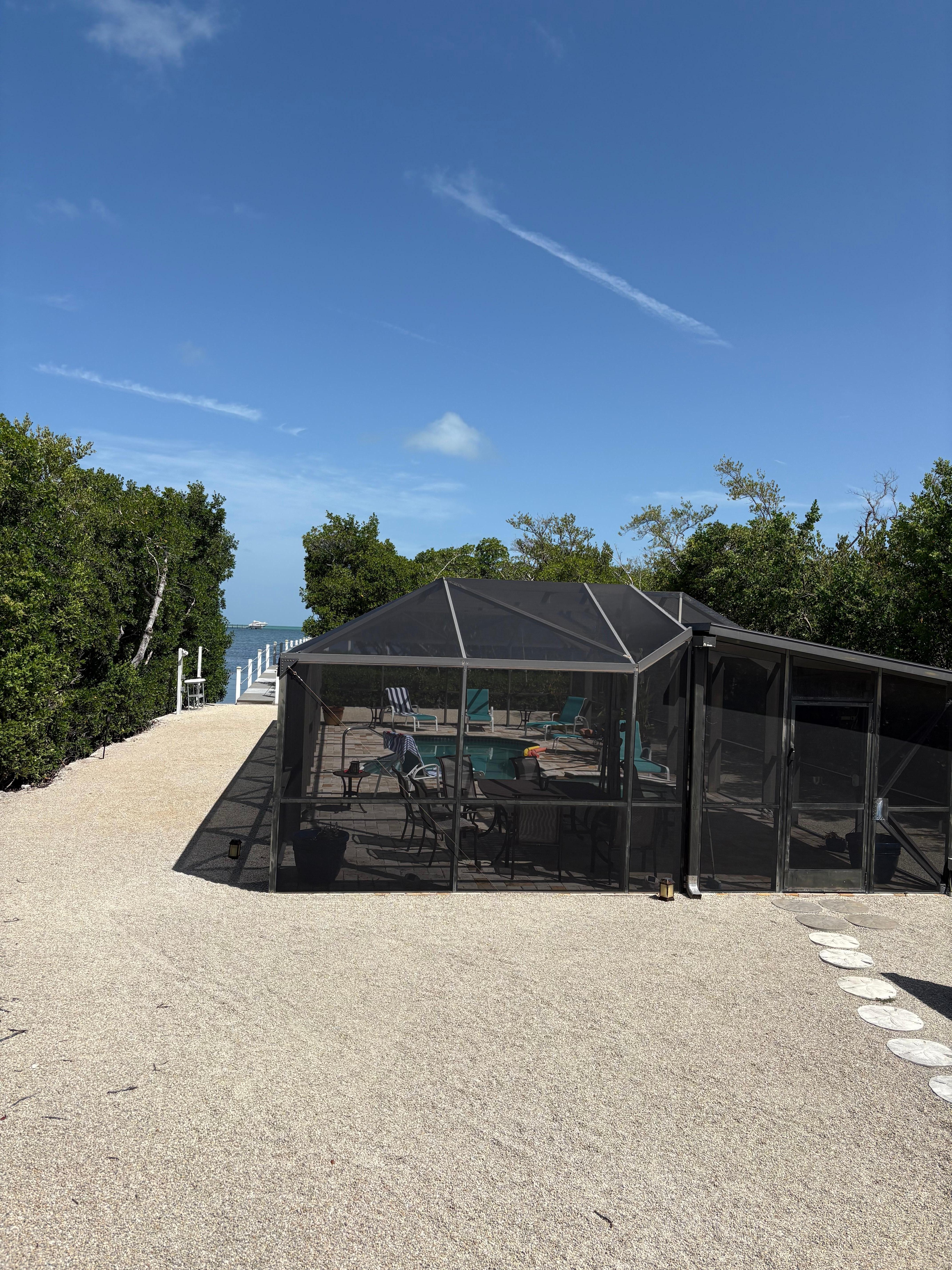 Imagine paradise in a completely secluded location where there are no neighbors on either side of you. The backyard at Key Lime Kottage is the Gulf of Mexico! This is just the home for you! Beautifully appointed Keys home with a fully equipped kitchen, 3 bedrooms and 2 full bathrooms. Our pool and hot tub are completely enclosed inside of a 56' x 24' pool enclosure. We have an outdoor dining table for 6 in the pool enclosure and also have 6 lounge chairs with small tables for your lounging pleasure.