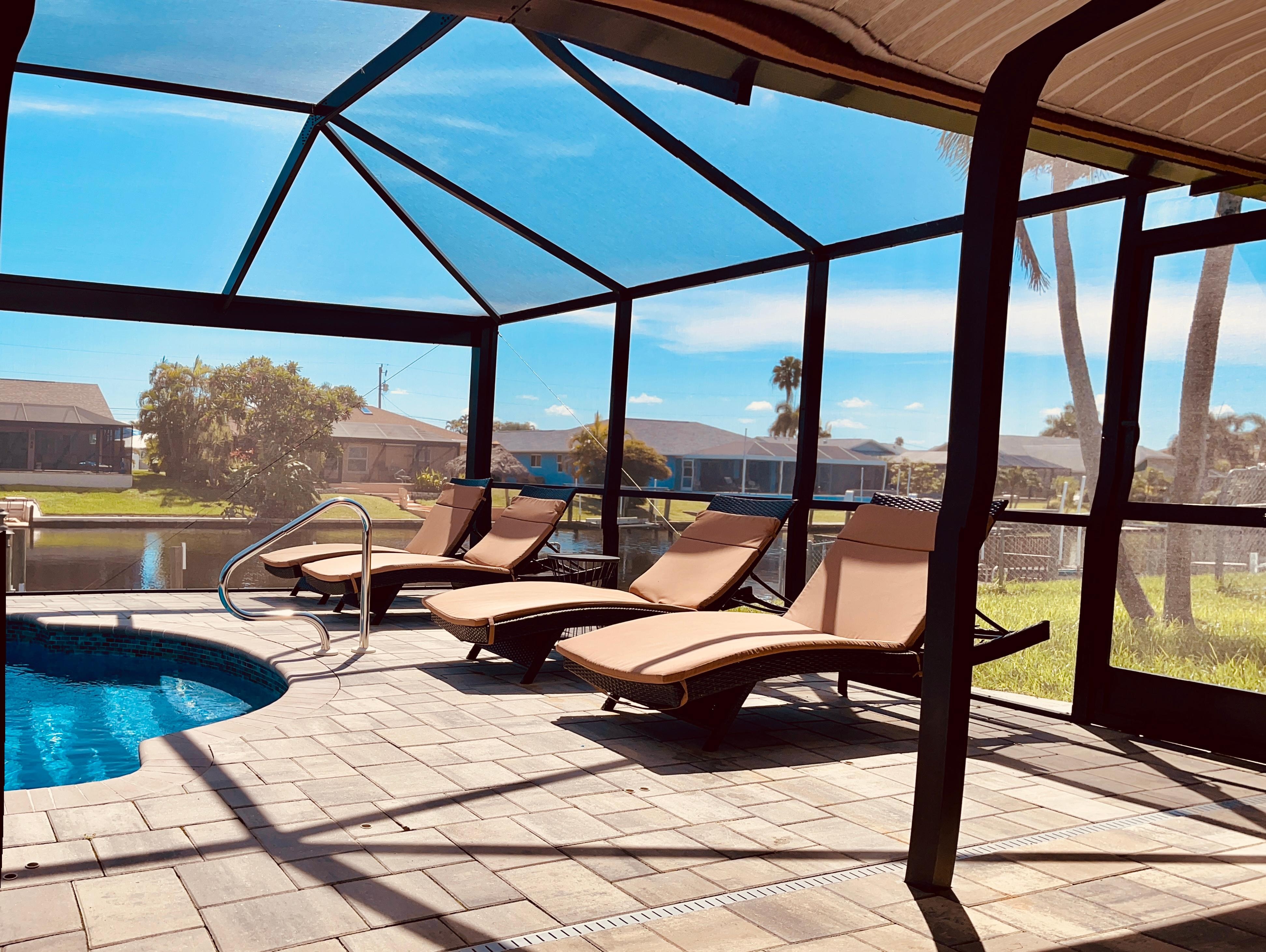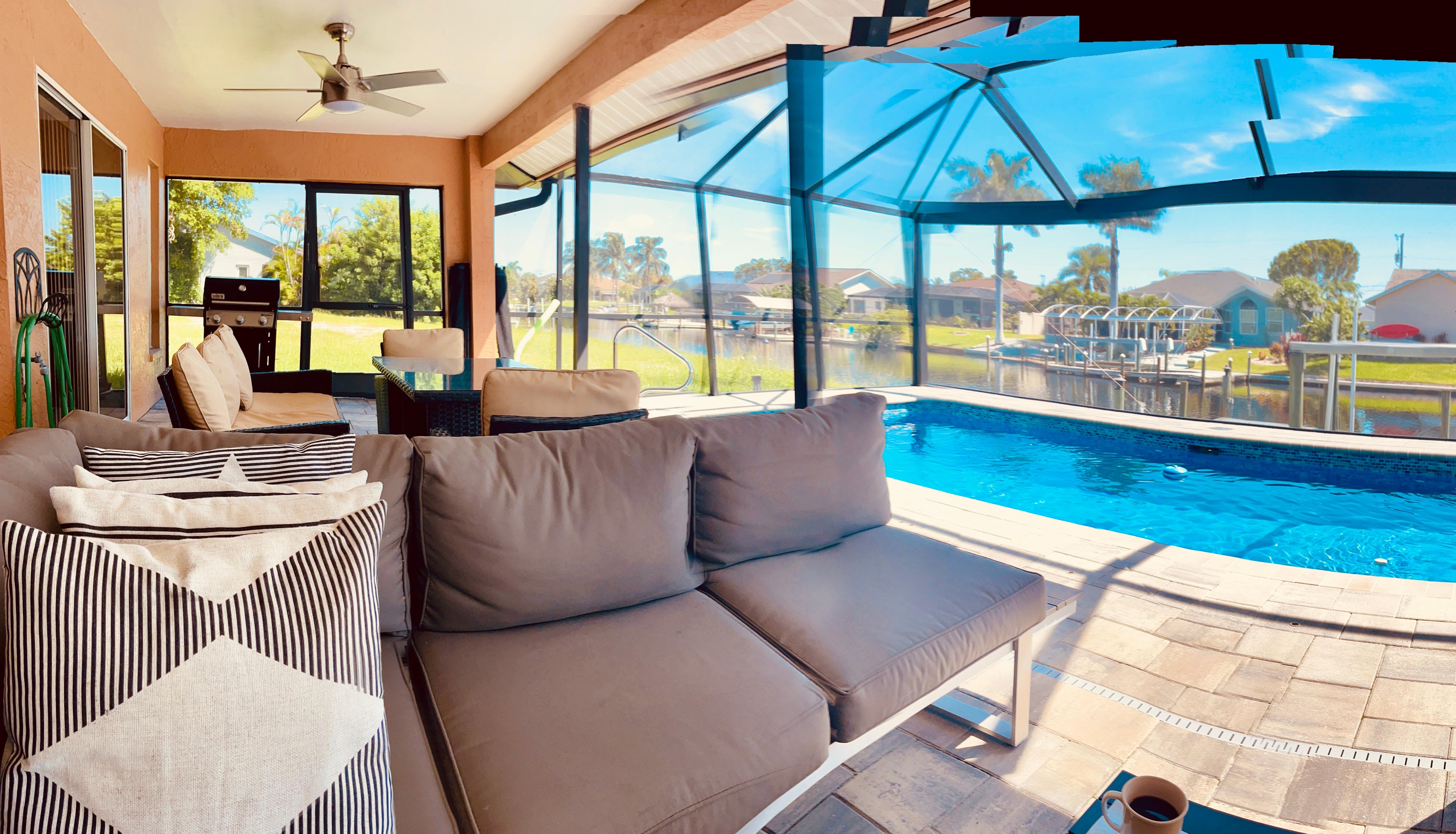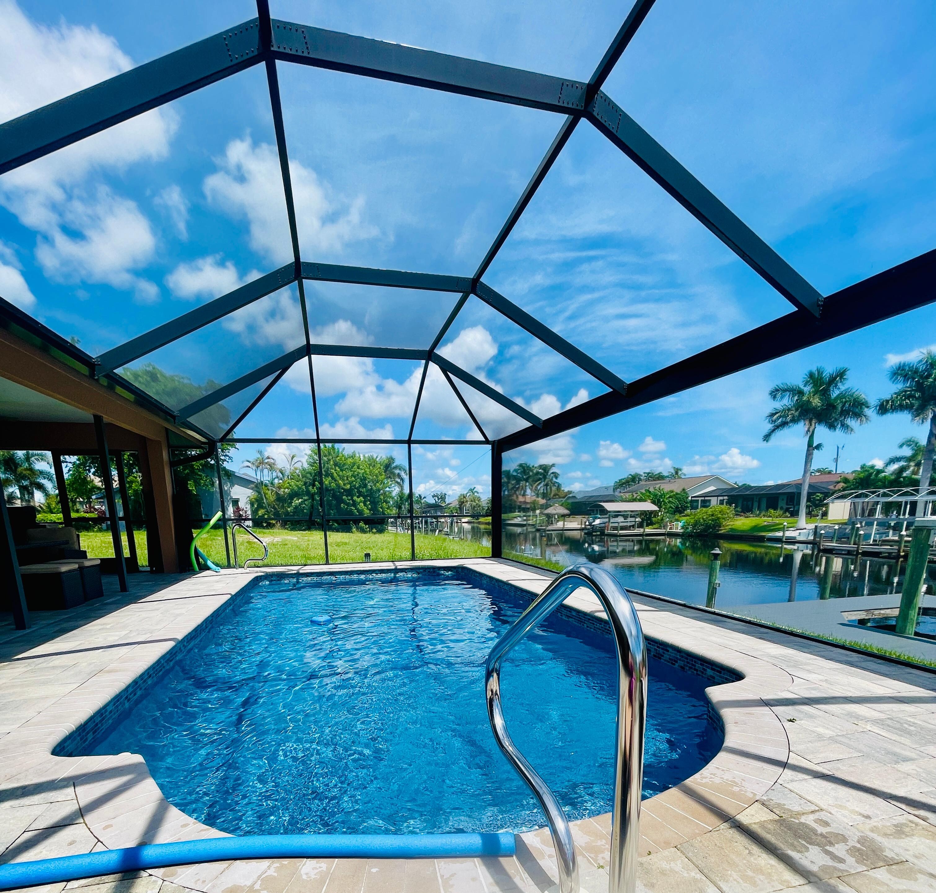 Welcome to your luxury gulf access canal front paradise with heated pool in the heart of Cape Coral! Chef's kitchen for culinary delights , while the large rain shower and soak-in tub offer spa-like opulence. Smart speakers in every room for relaxation, and the king-size bed in the master bedroom ensures a blissful night's sleep. Patio is equipped with removable child safty fence, 4 large Loungers, dining set, and conversation set, every gathering is an elegant affair. Just a short drive from a world-renowned beach.