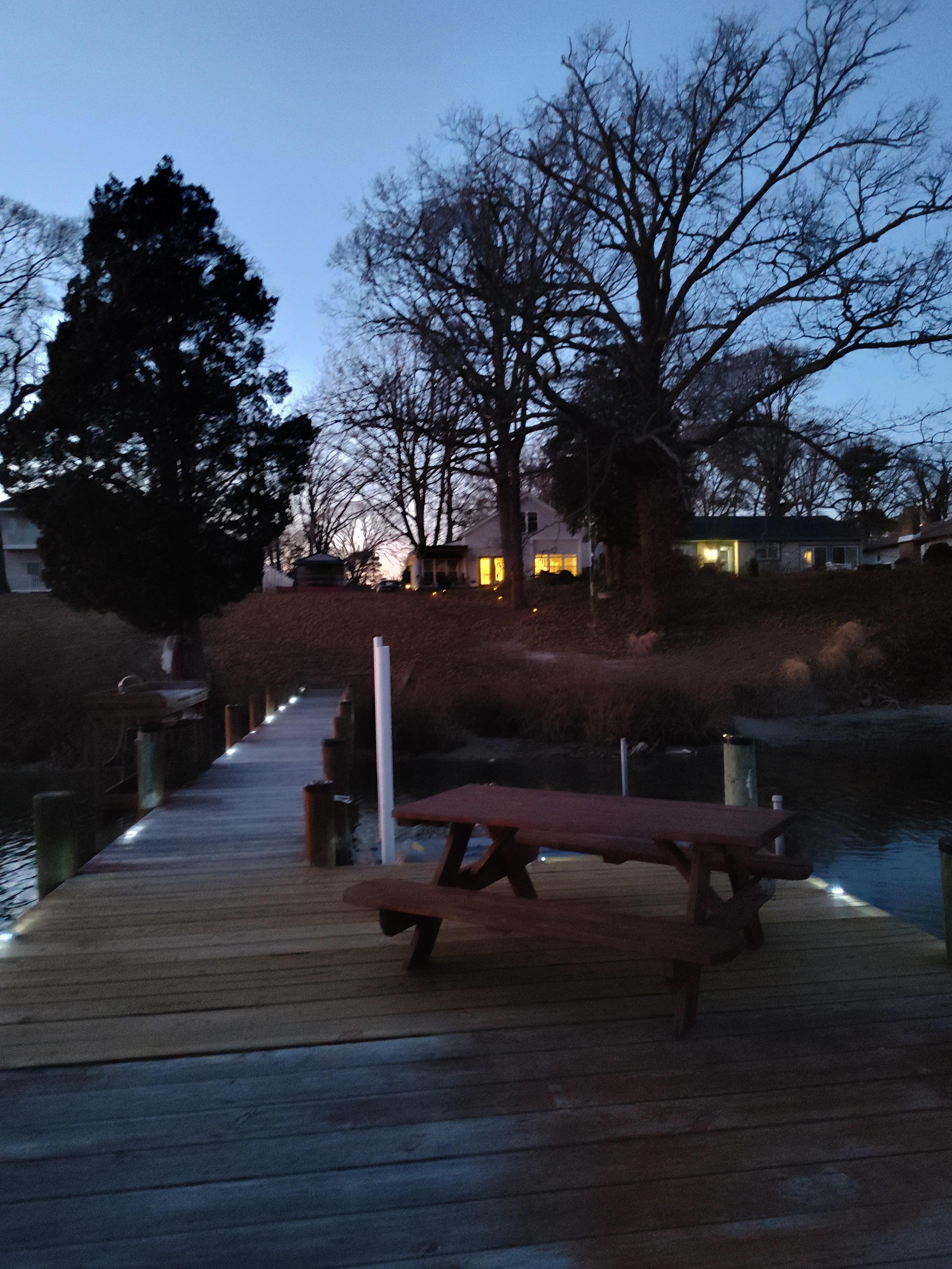 --Dock: Private dock with a lighted path, marine grade light for fishing and picnic table