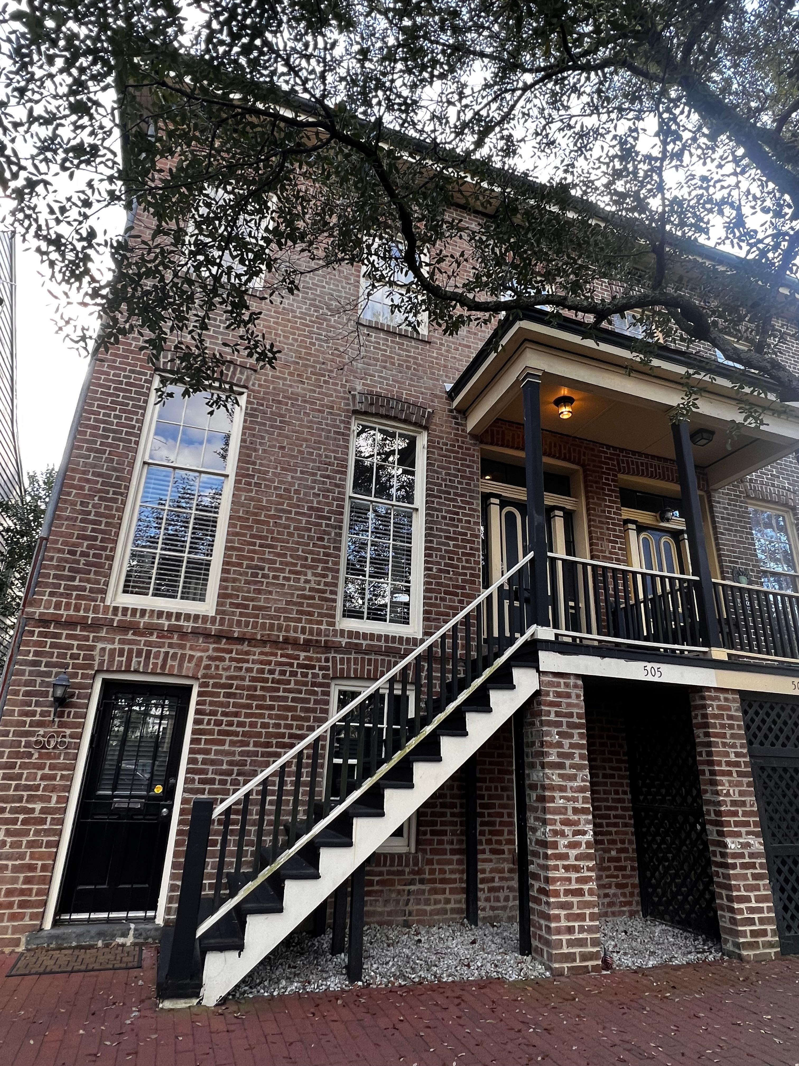 This house is a traditional 3 story Savannah Brick townhouse. You are looking at the listing for the main house which is consists of the upper 2 stories of the home. The ground floor of the house is a separate/independent one bedroom apartment with its own entrance. If you have any questions about the setup of the house please feel free to call. The apartment is available on vrbo under listing 345323. This listing 394500 is for the 'main house'.