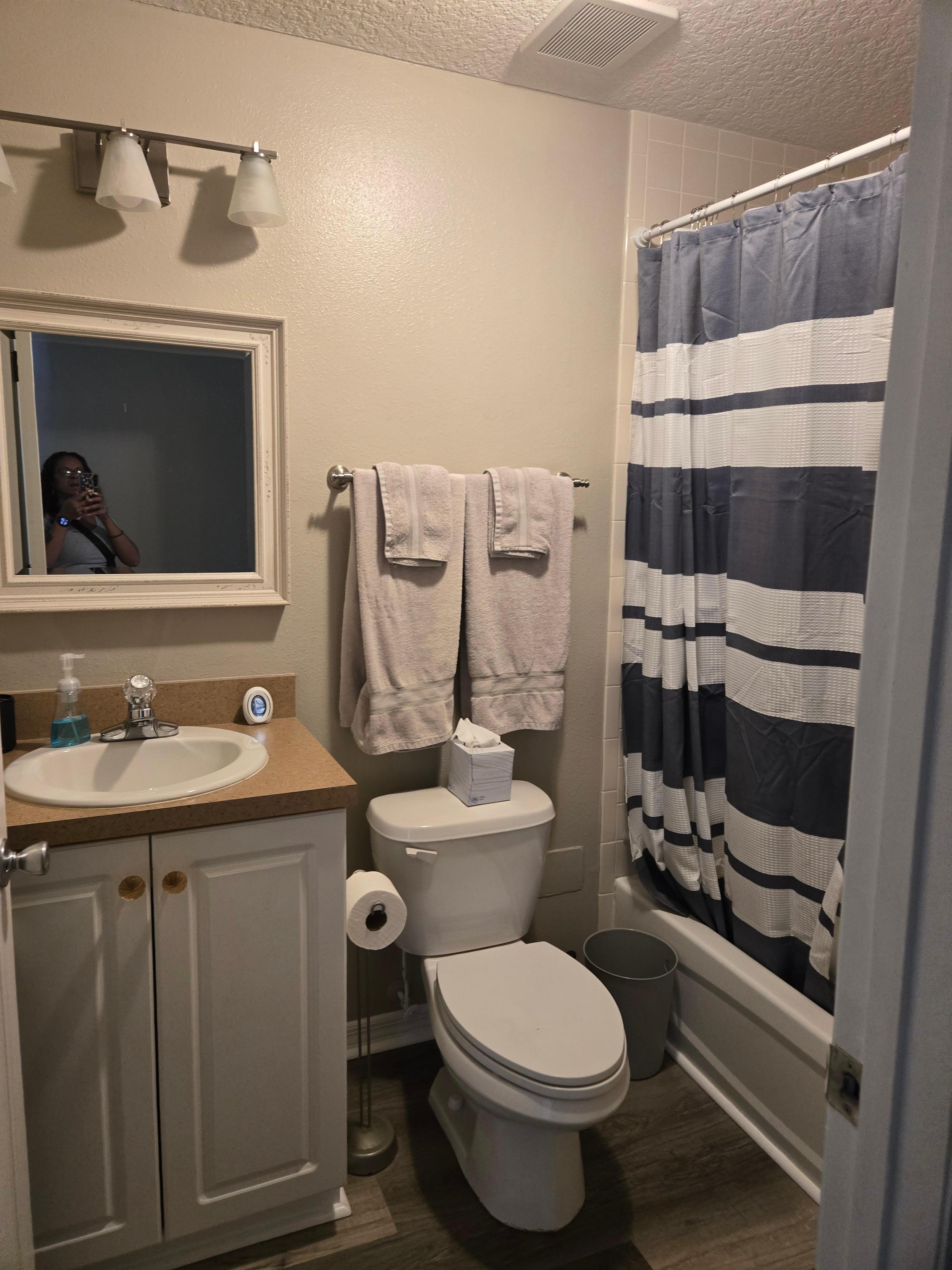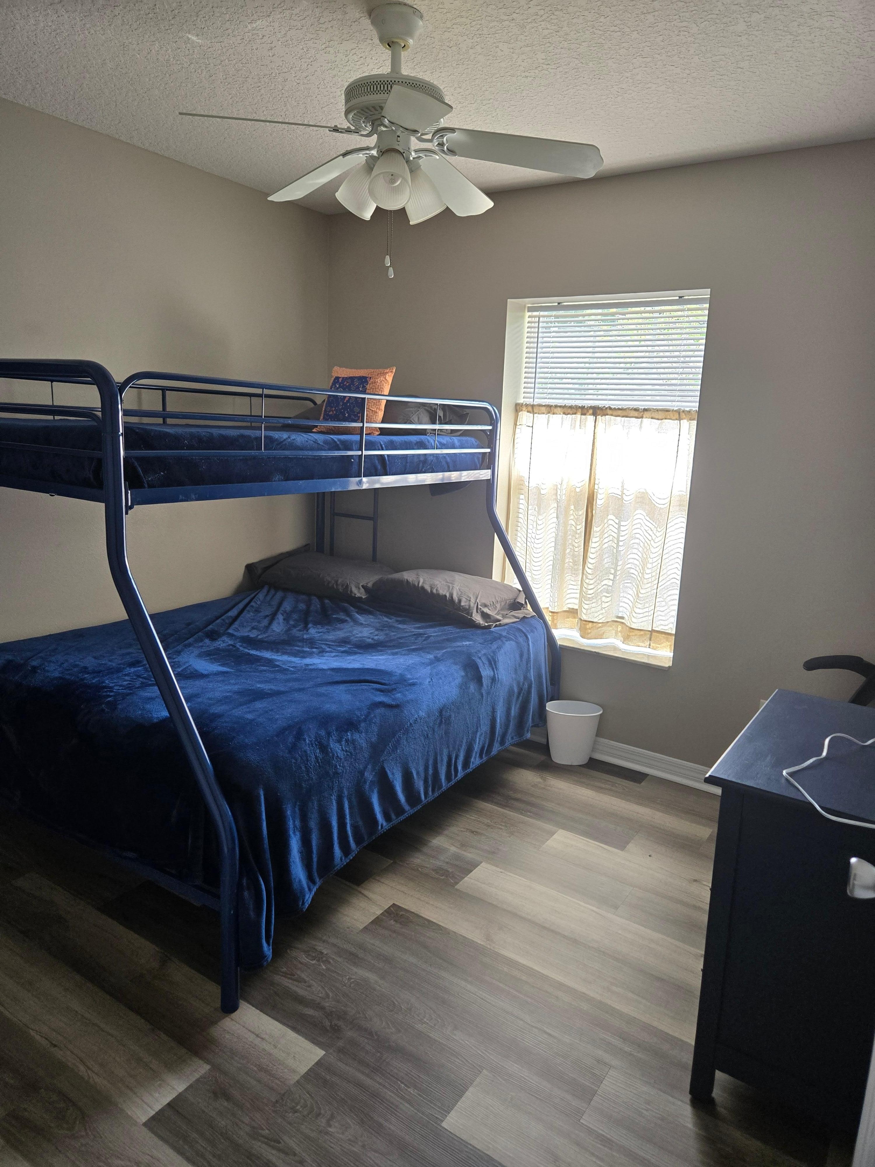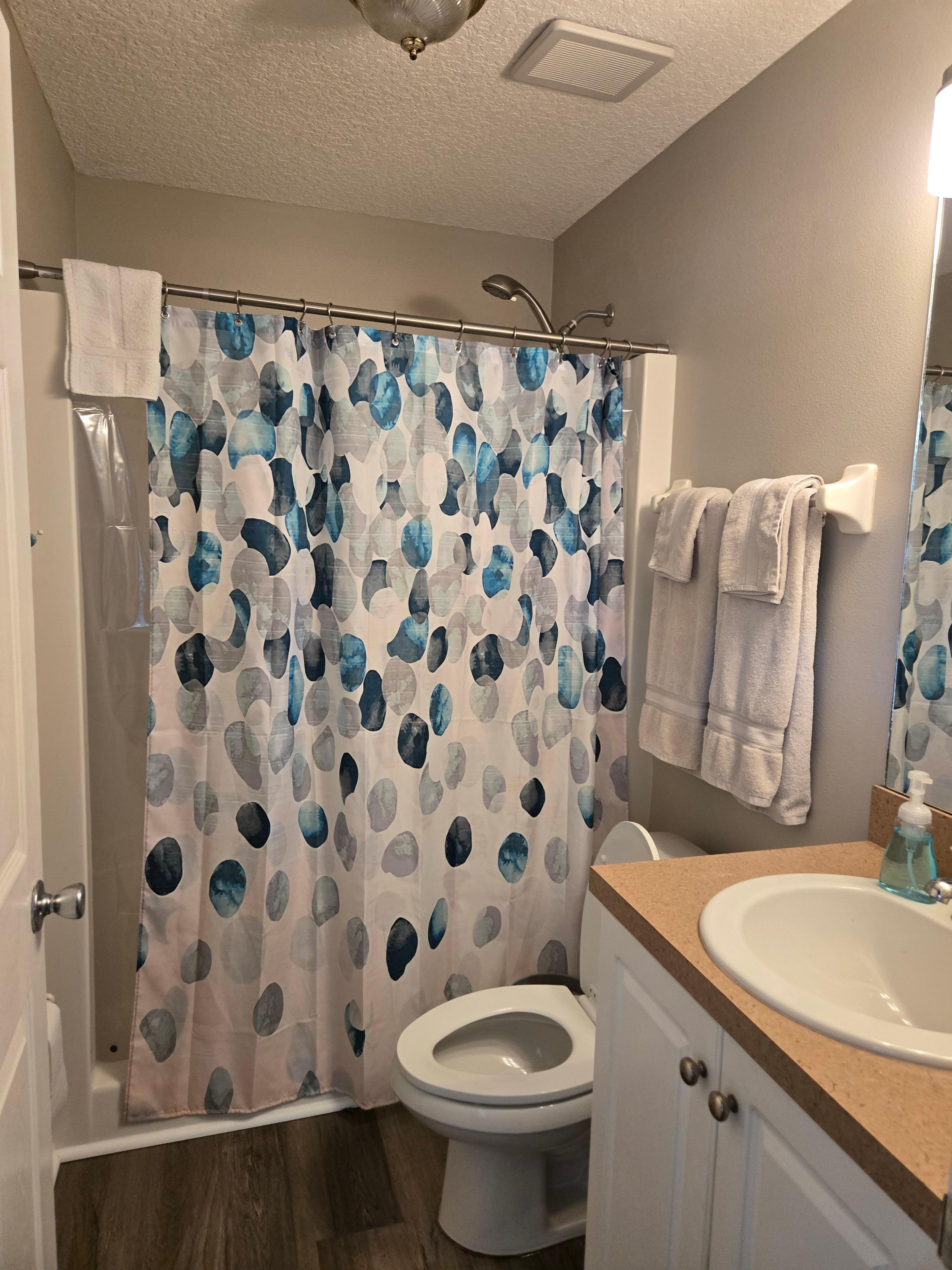 Bedrooms: Linens. Hangers. Pillows. Extra blankets. Master bedroom- split king adjustable bed with private bathroom (shower only). 2nd bedroom- bunk w/ single and full bed; 3rd bedroom- 2 twin or 1 king (short)