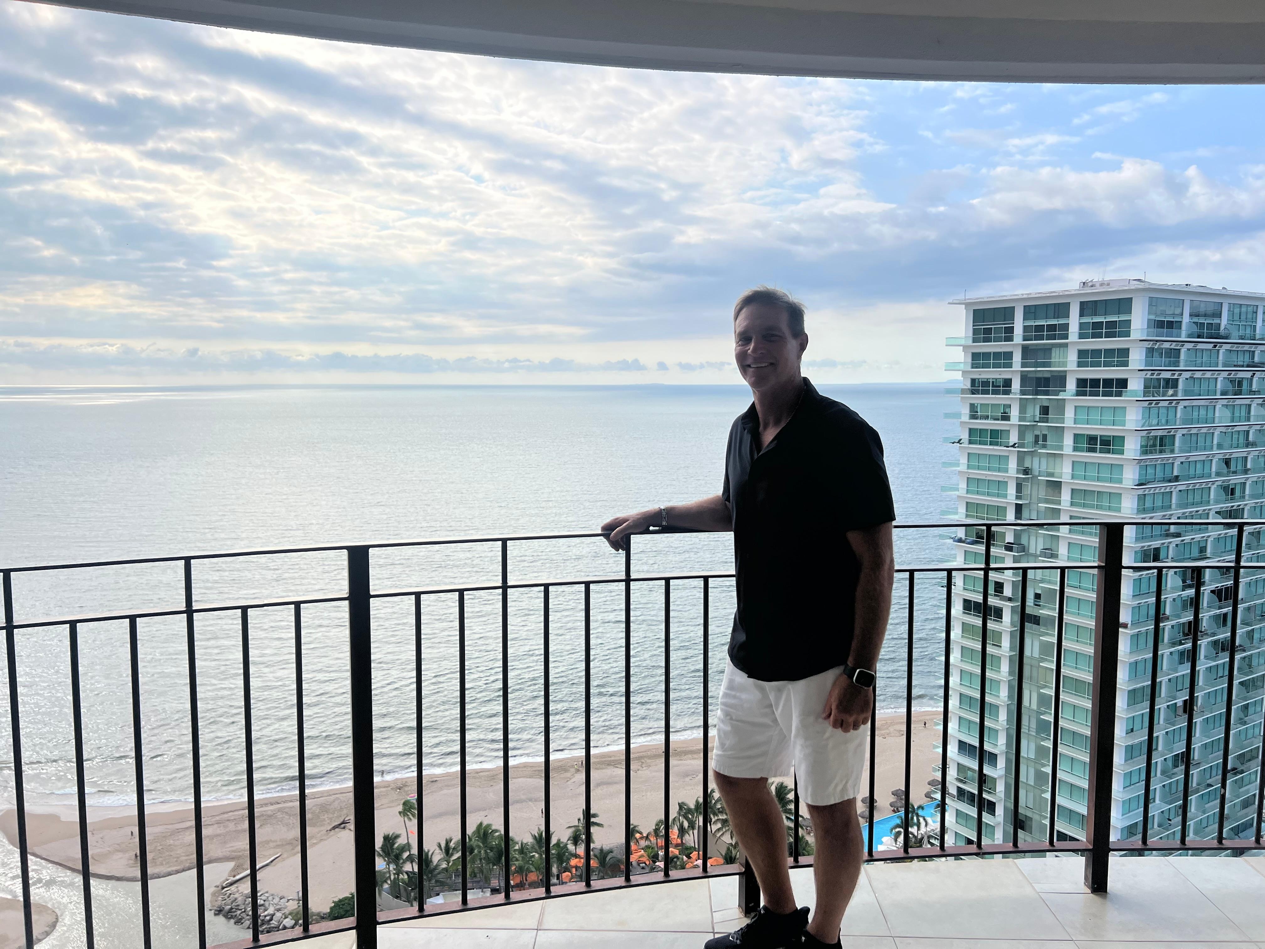 The oceanfront balcony boasts comfortable lounge chairs and couch.. There are smart TV`s in the living room and bedroom and the bed is a king-sized bed.