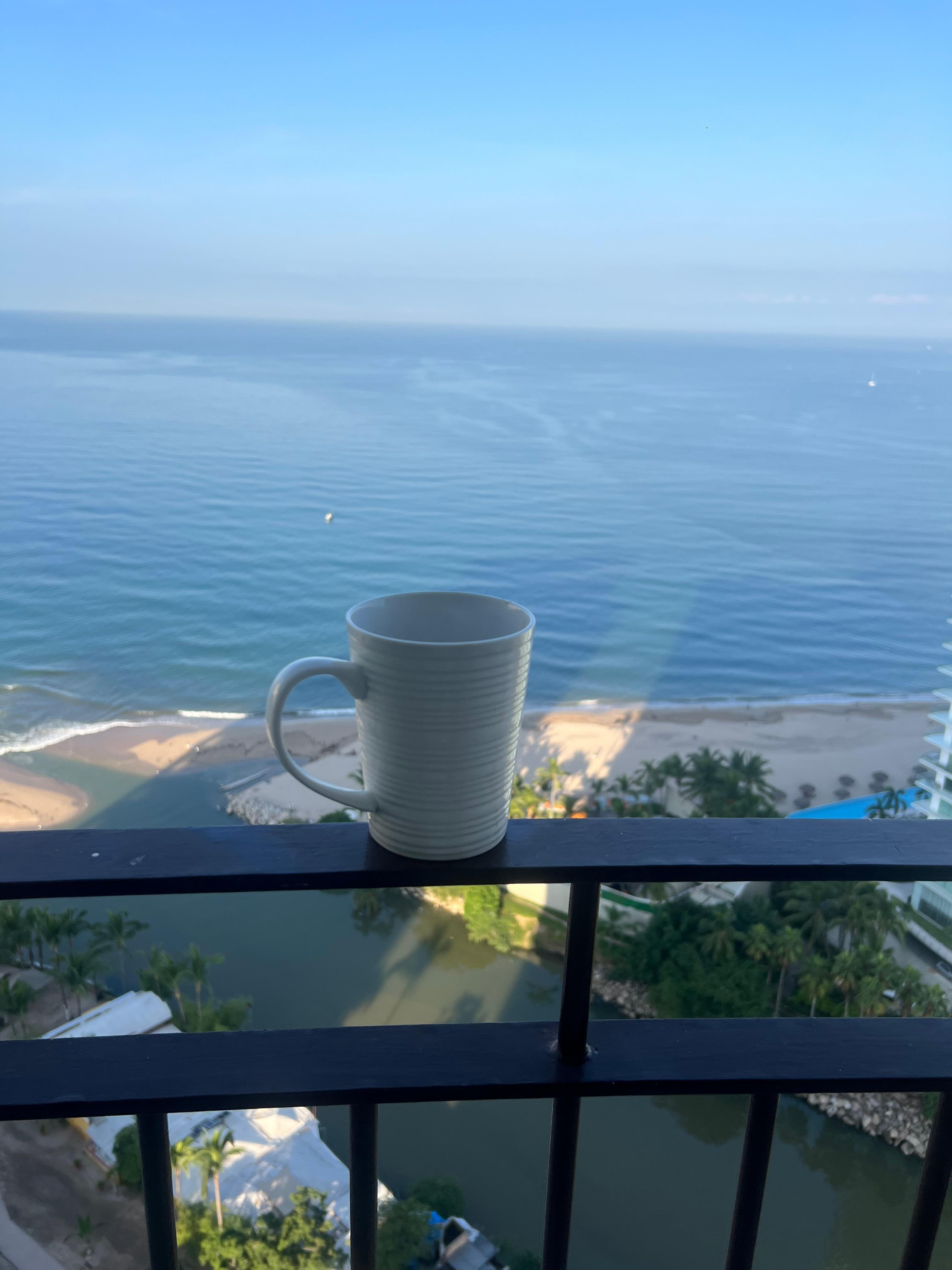 The unit is a one-bedroom, one-bath unit with oceanfront views from the kitchen, living room and balcony.