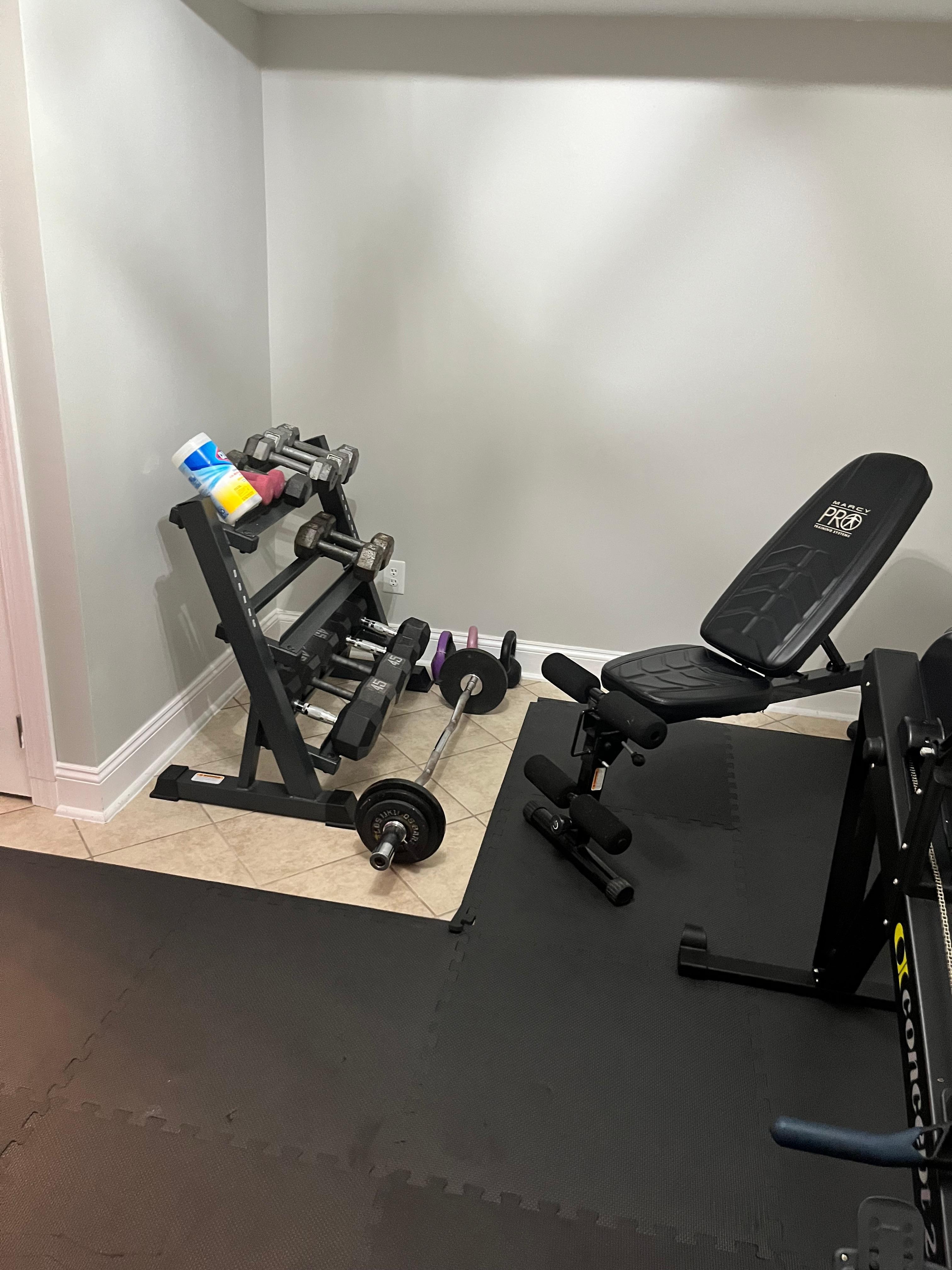 The fitness space includes a treadmill, concept 2 rower, exercise ball, kettle bells and free weights up to 45lbs.