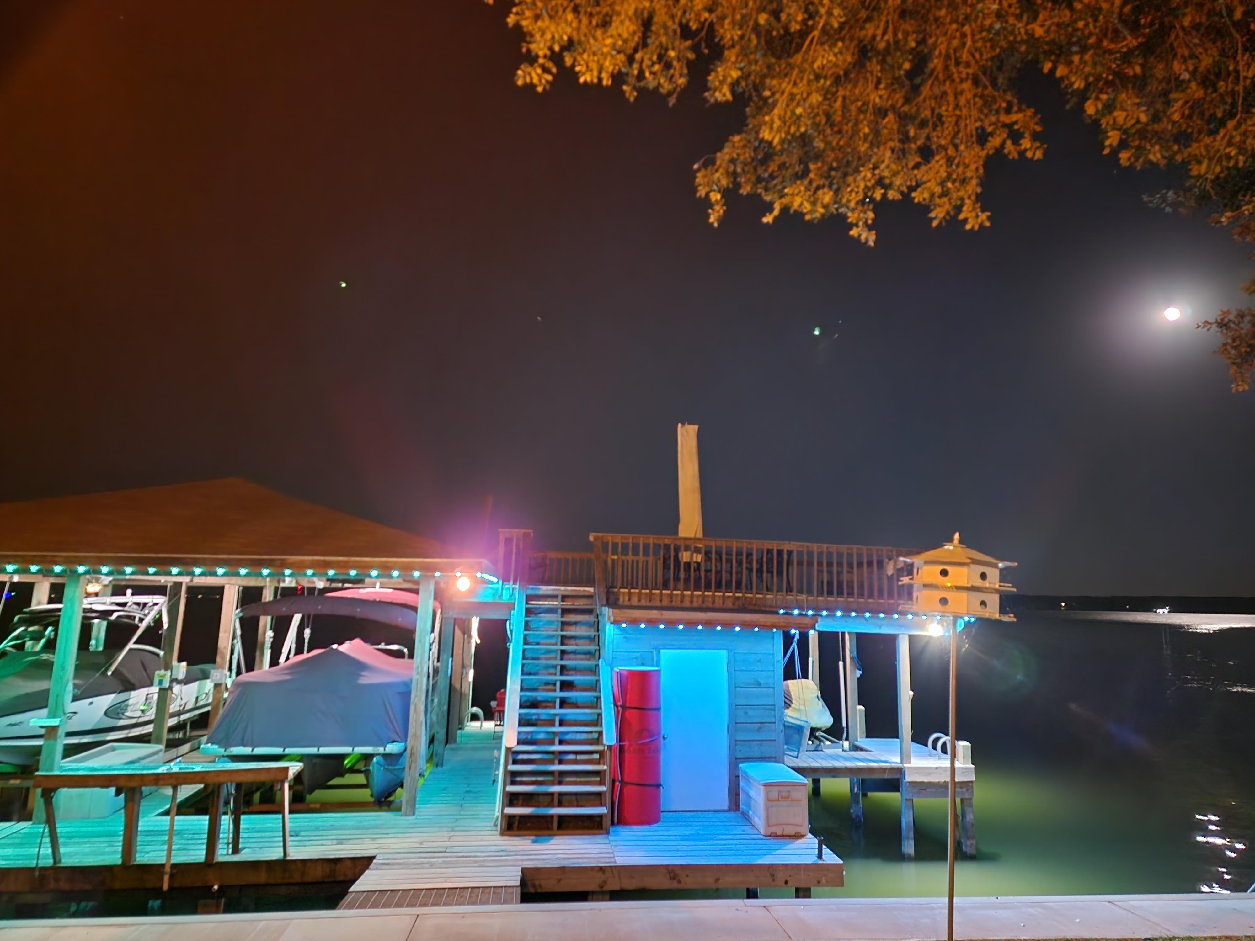 One acre lake front property on Indian Hills Peninsula. Perfect location and amenities for Family Reunions, Ladies Weekend, or Guys Fishing retreat. Smores at the lakeside firepit, star gazing from the roof of the boathouse, and fishing (catfish, bass, gar) from the illuminated boathouse. Kids will enjoy endless hours of swinging from the rope swing and swimming off the dock. Home is equipped with high speed internet and bluetooth speaker down at the dock.