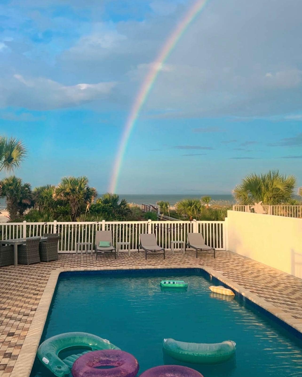 Welcome to your slice of paradise at New Smyrna Beach! Where the gentle sway of the dunes meets the ocean. This two-story retreat with not only panoramic views of the sea from its balcony but also the convenience of dual kitchens and spacious bedrooms on both levels.