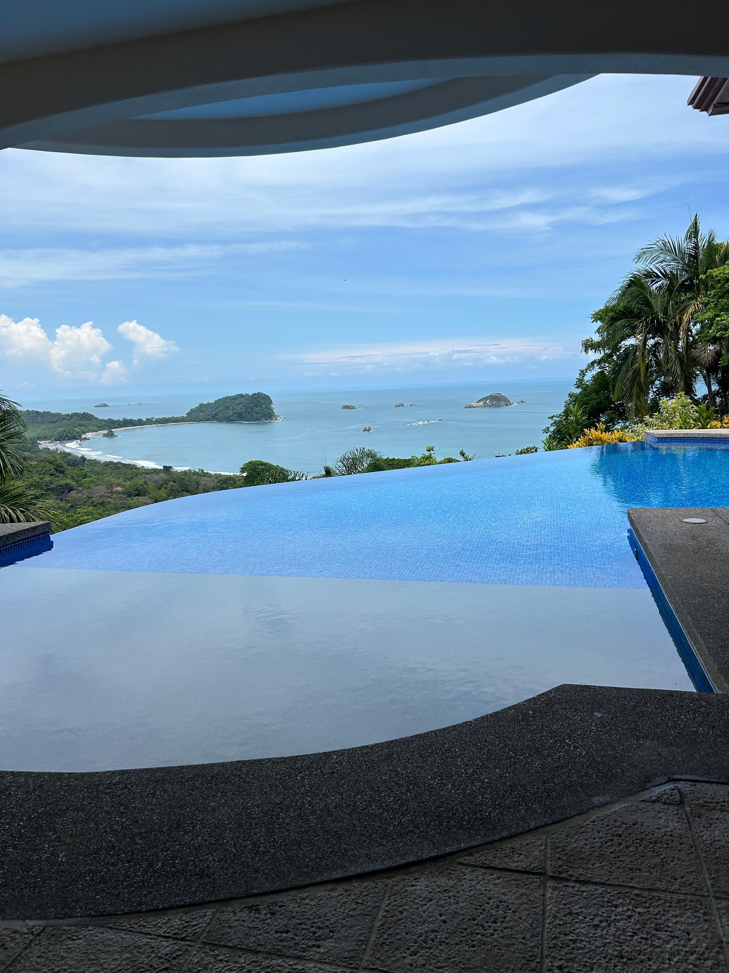 The entrance is dramatic and when walking through the front door you can’t help but feel overwhelmed in awe. Let the grand staircase lead you through the three levels. Enjoy the world famous post card view of Manuel Antonio park from the master bed, jacuzzi and roof top terrace. From every terrace you will enjoy the splenders of nature that surround you.