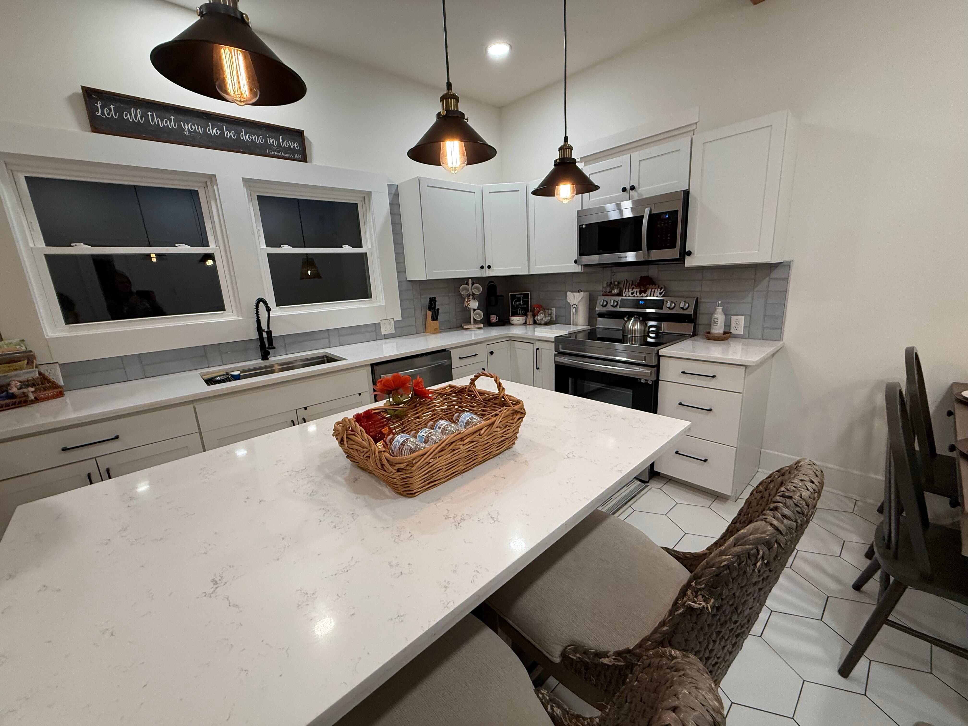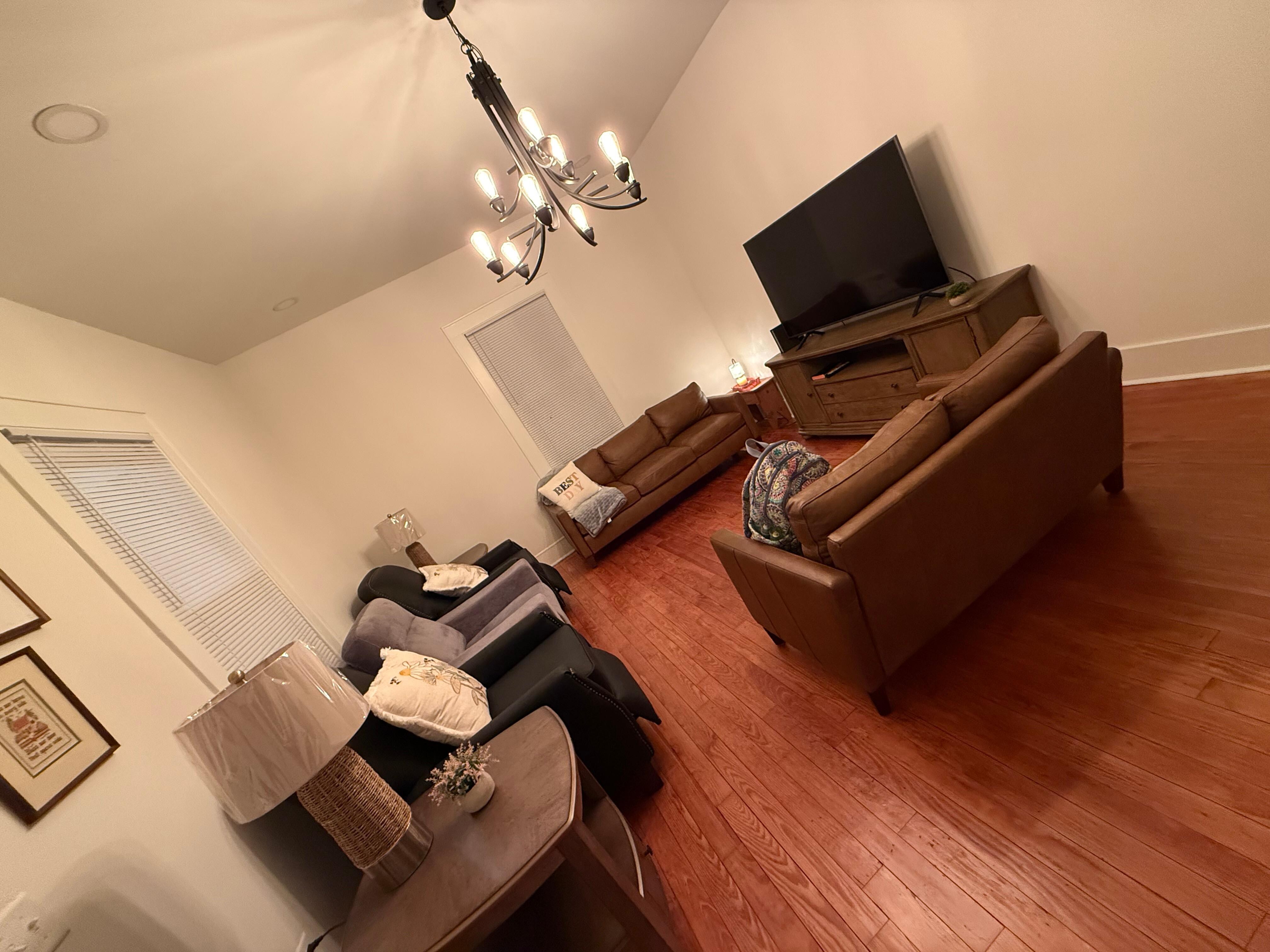 Entire house is newly updated. Living room includes 2 recliners, two sofas with a 60in Tv and free wifi.