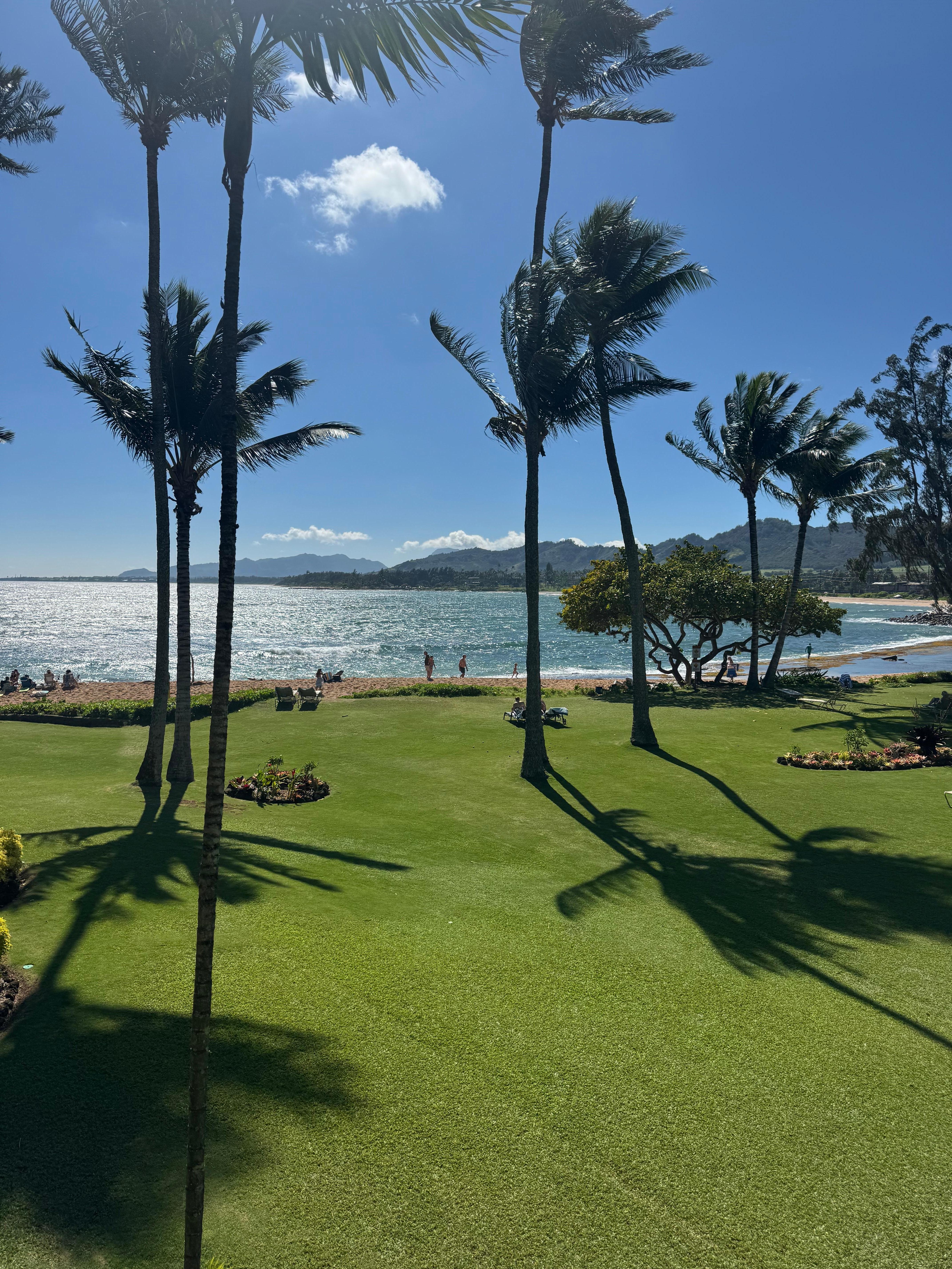 We found this condo a great location for our stay in Kauai. We loved the green grass view in the foreground with the ocean in the background. The bed was comfortable, the bath towels were soft and we found the interior fit our needs perfectly. We appreciated the beach chairs and towels. We would love to plan a return stay one day.