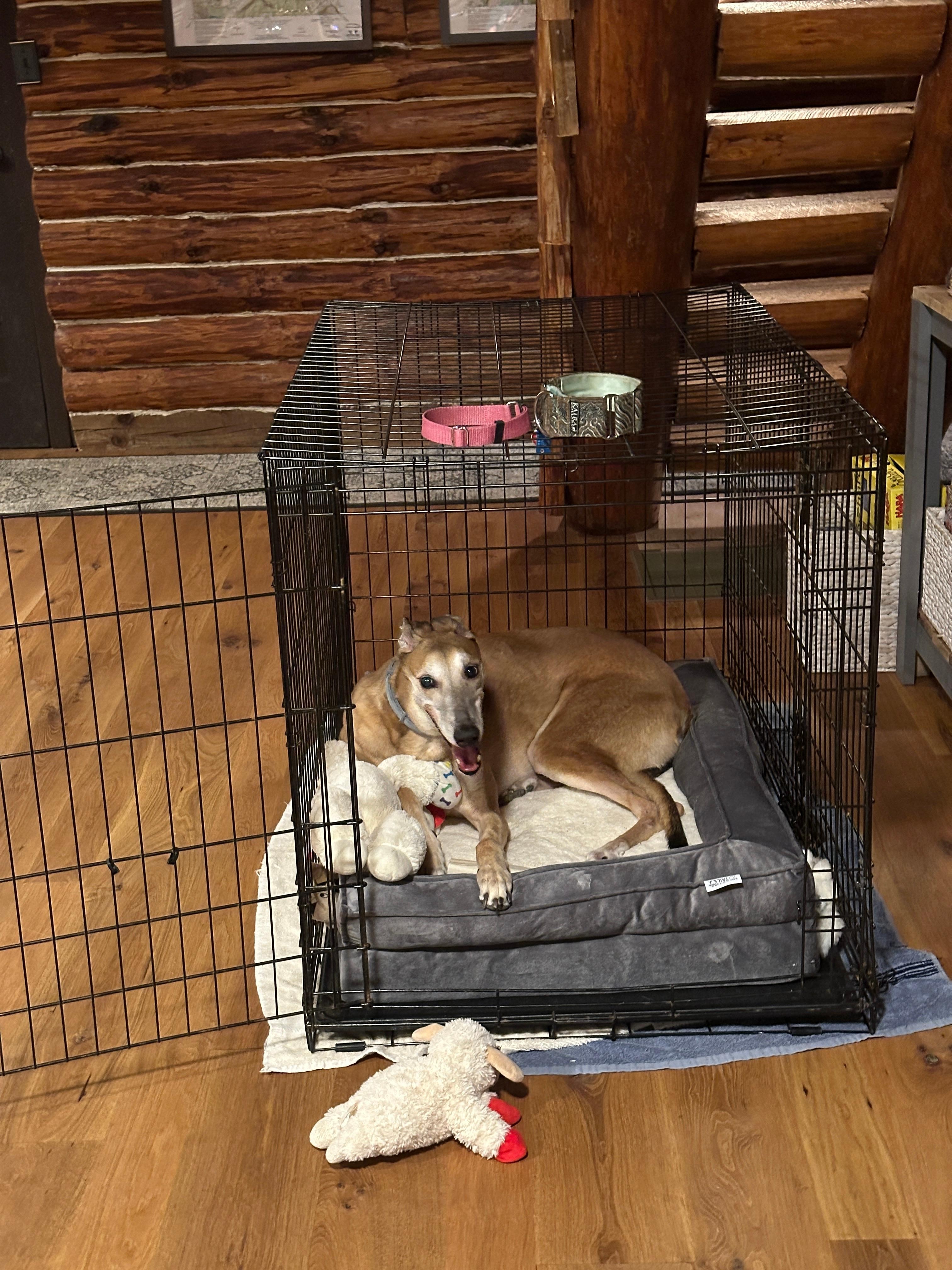 ---- Inside the cabin, dogs will not be left unattended unless crated