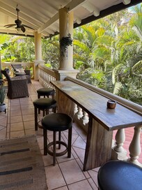 - Private balcony overlooking tropical gardens and distant ocean views